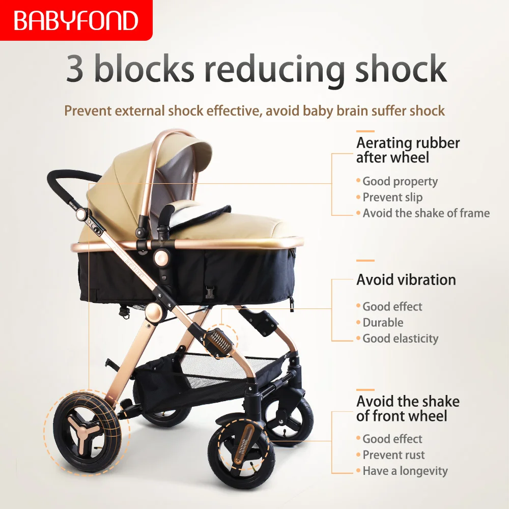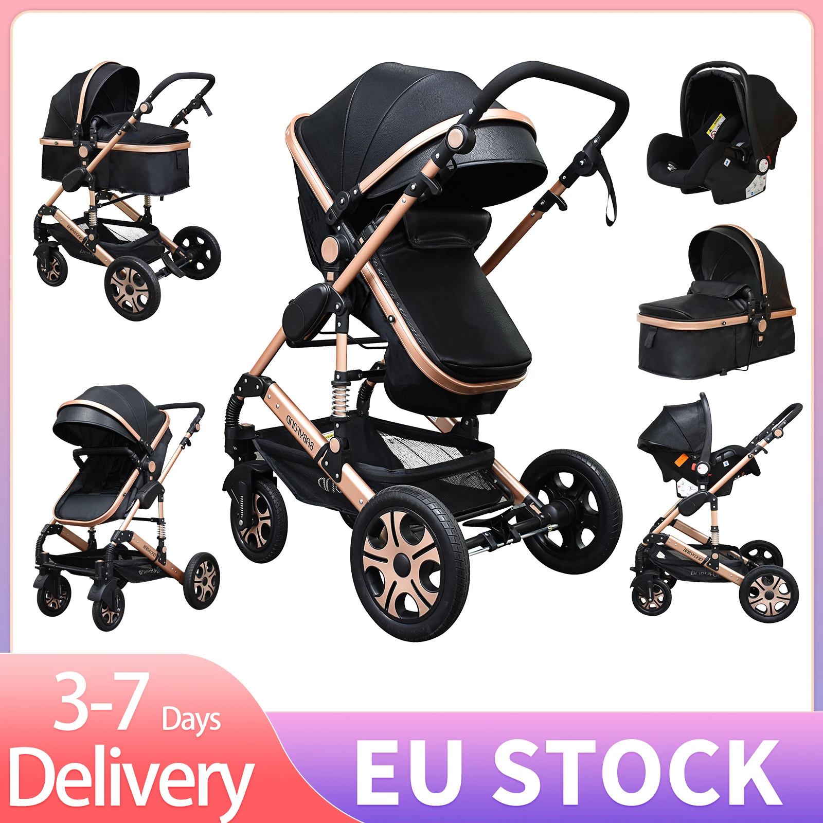 Бесплатная доставка! Роскошная детская коляска 3 в 1, полиуретановая коляска с высоким ландшафтом, детская коляска, сиденье и кресло-зонтик с автомобильным сиденьем