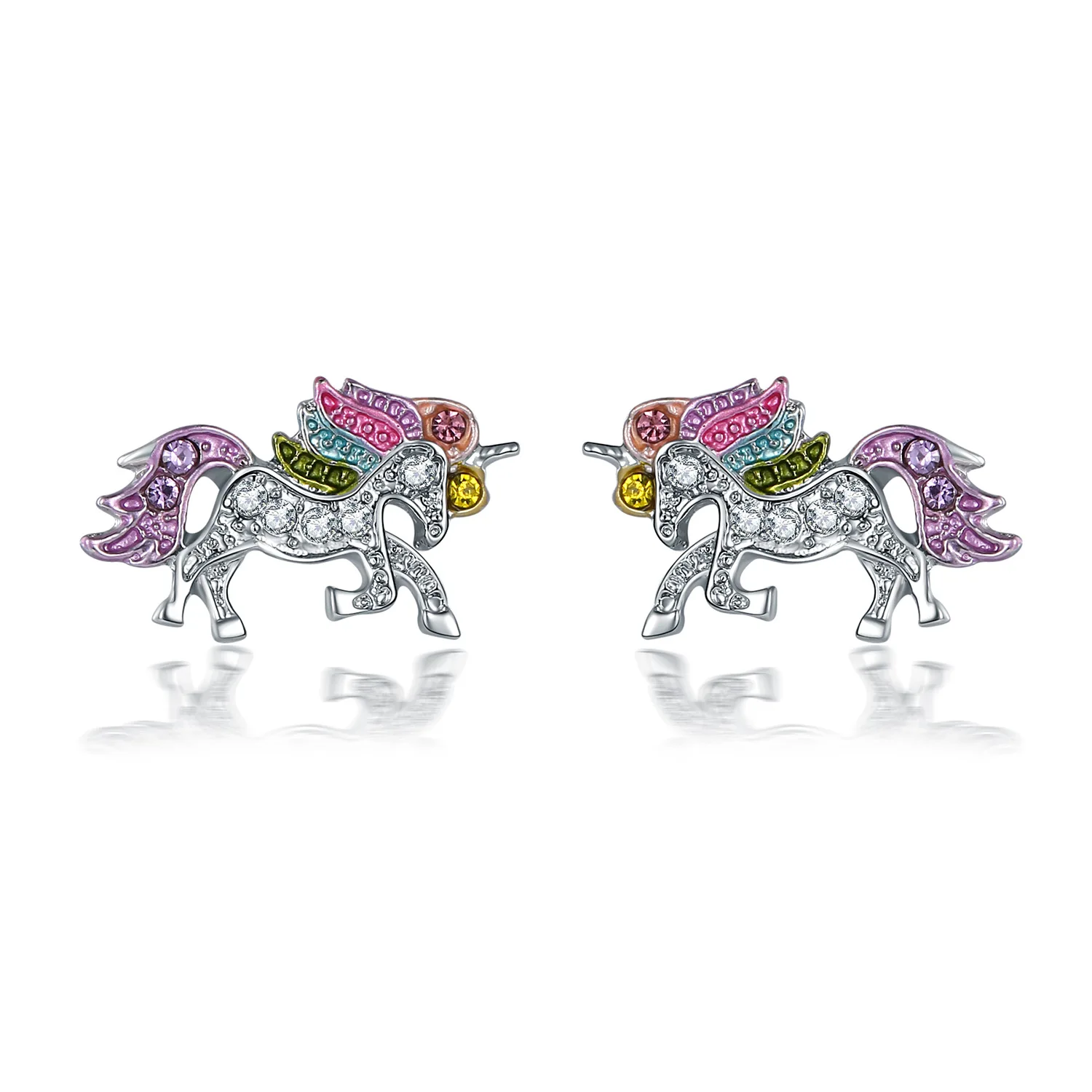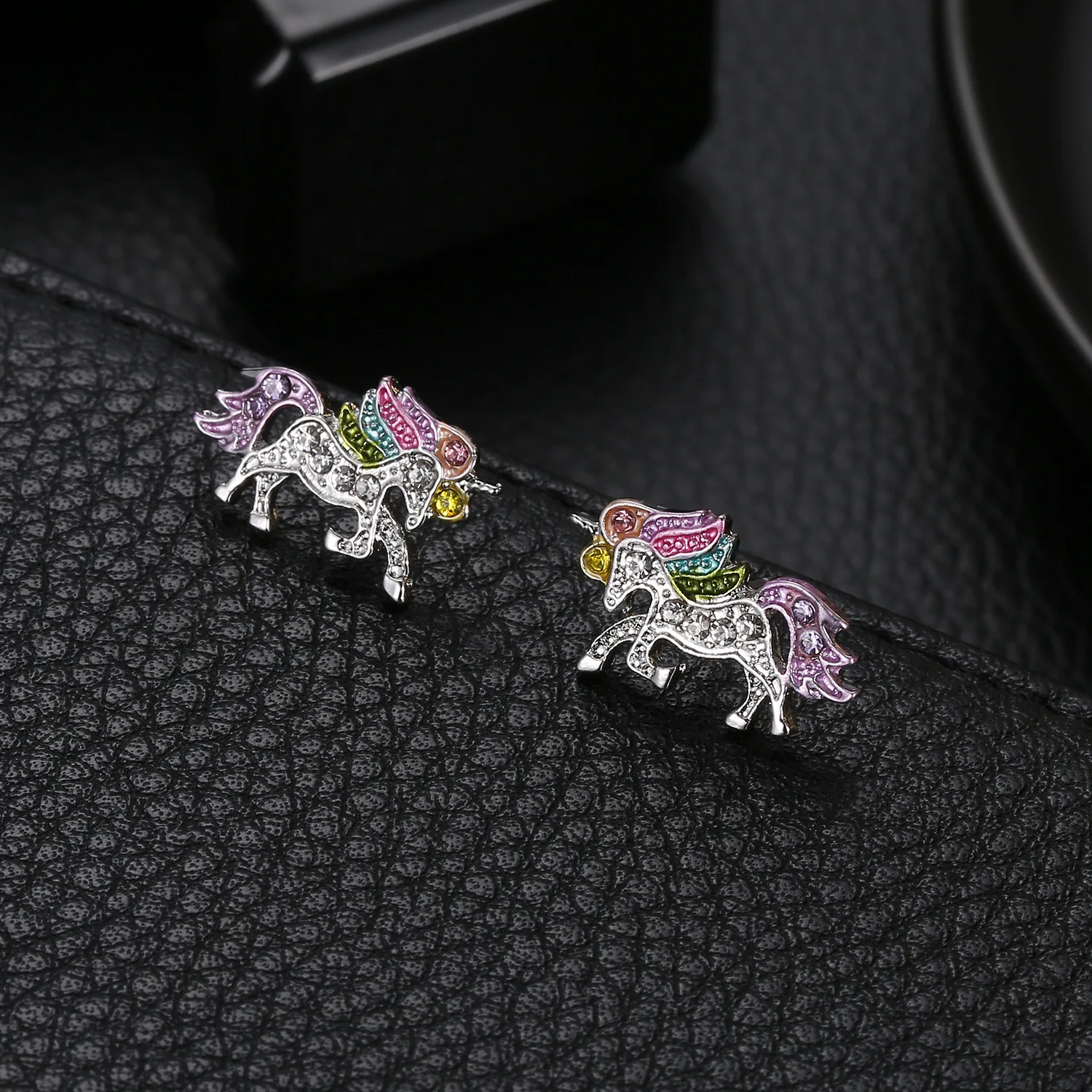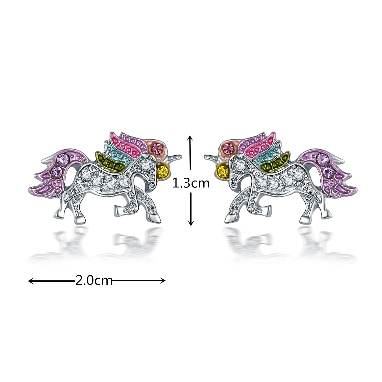 Япония и мальчиков в Корейском стиле, милый костюм с рисунком героев из мультфильмов с цирконом Единорог Цвет Металл пони, серьги со шпилькой, для женщин, ювелирное изделие для ушей, ювелирное изделие в подарок для девочек
