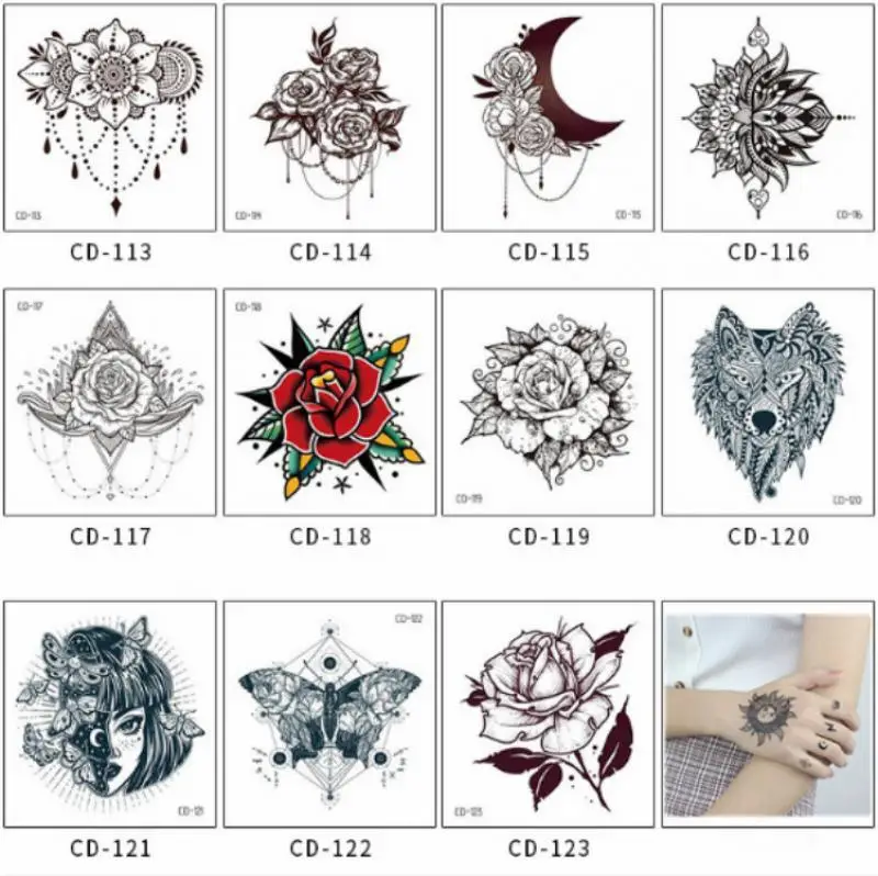 Водостойкая Временная тату-наклейка в виде бабочки, цветок, роза, и...