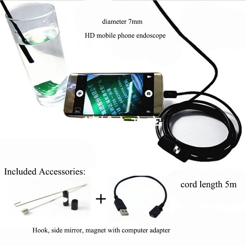 7 мм Мини USB эндоскоп Камера Водонепроницаемый HD бороскоп Гибкая ...