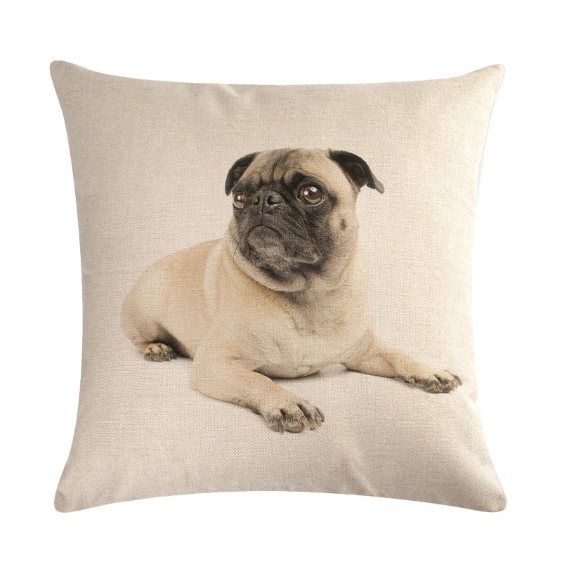 1 шт., чехол для подушки из хлопка и льна с изображением мопса, для автомобиля, на диван-кровать для дома, декоративная наволочка, Cojin 40657