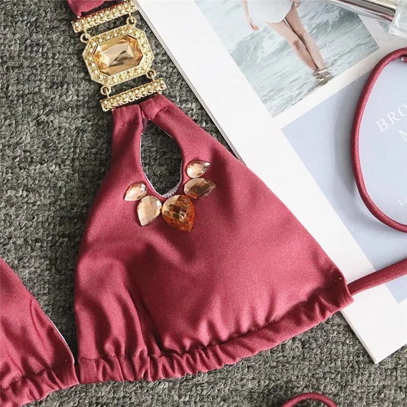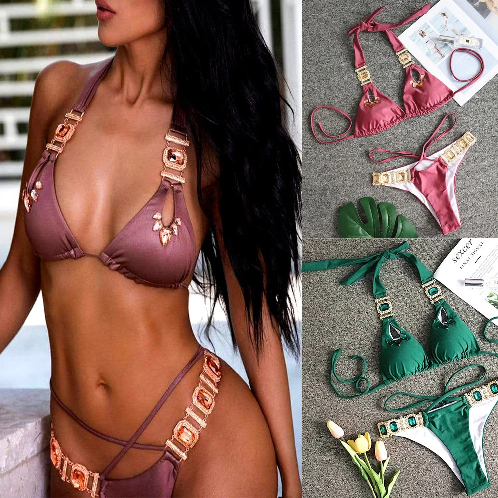 Бикини со стразами 2020, сексуальный женский купальник-бандо со стразами, женский купальник, бразильский комплект бикини из двух предметов, купальный костюм со стрингами