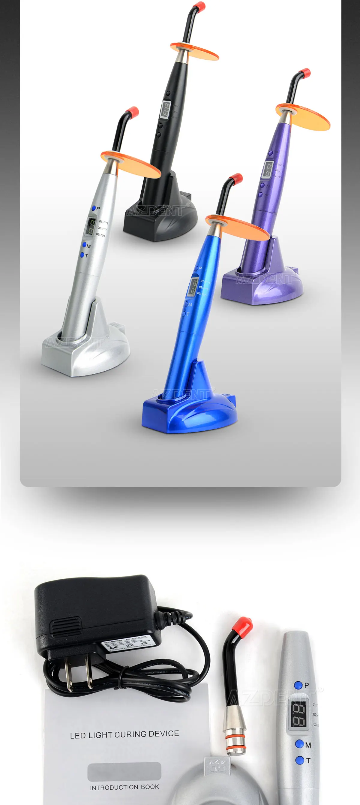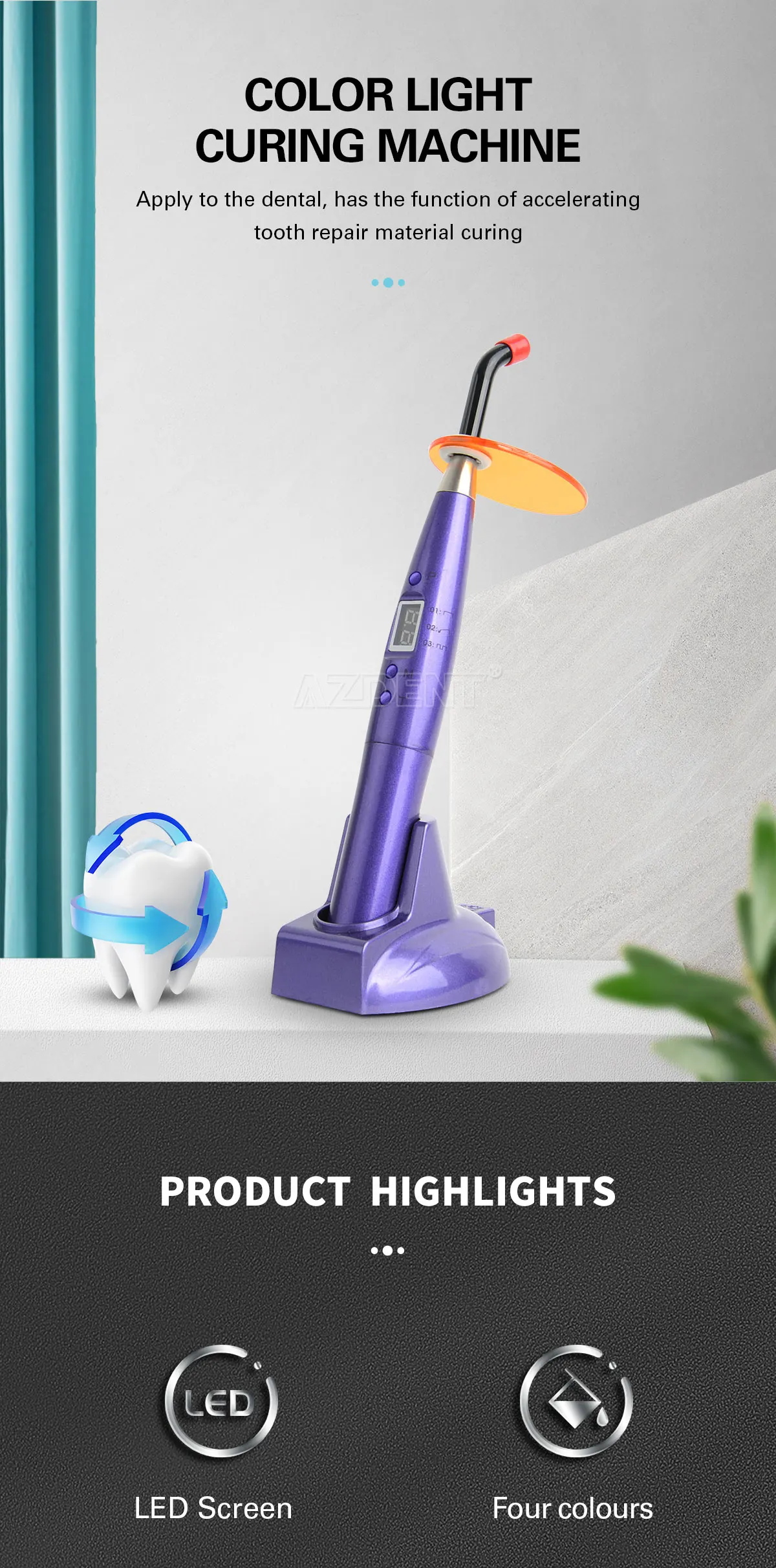 AZDENT Стоматологическая красочная Светодиодная лампа для отверждения Беспроводная лампа 5 Вт 1200 МВтм2 длина волны 440-480 нм стоматологический инструмент