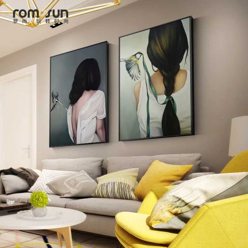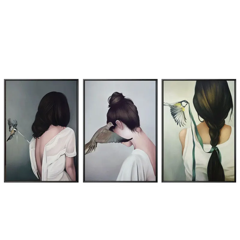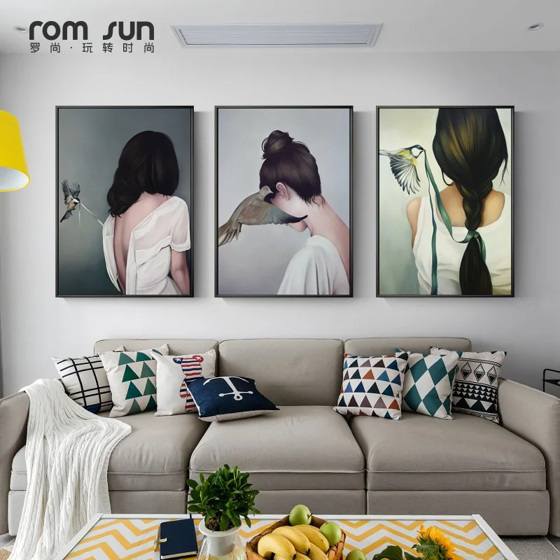 Постеры и печатные картины в скандинавском стиле с изображением девушек и птиц, настенные картины для гостиной, спальни, домашнего декора
