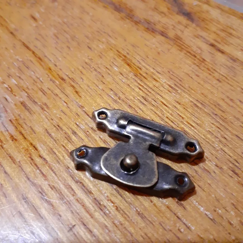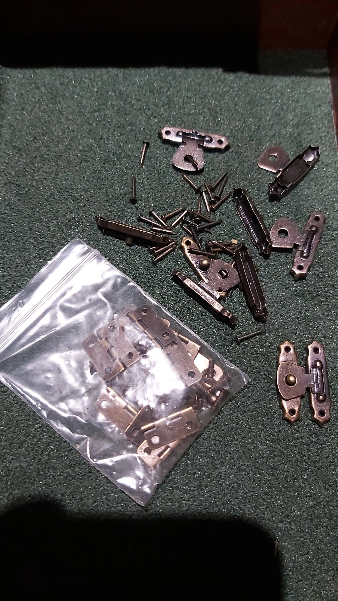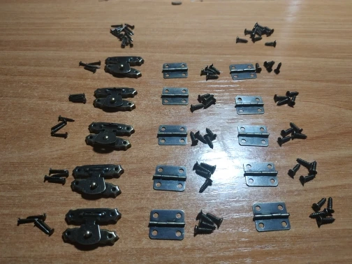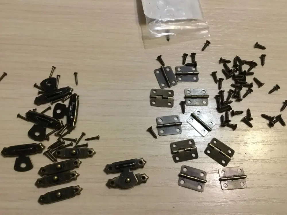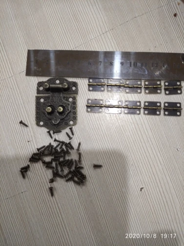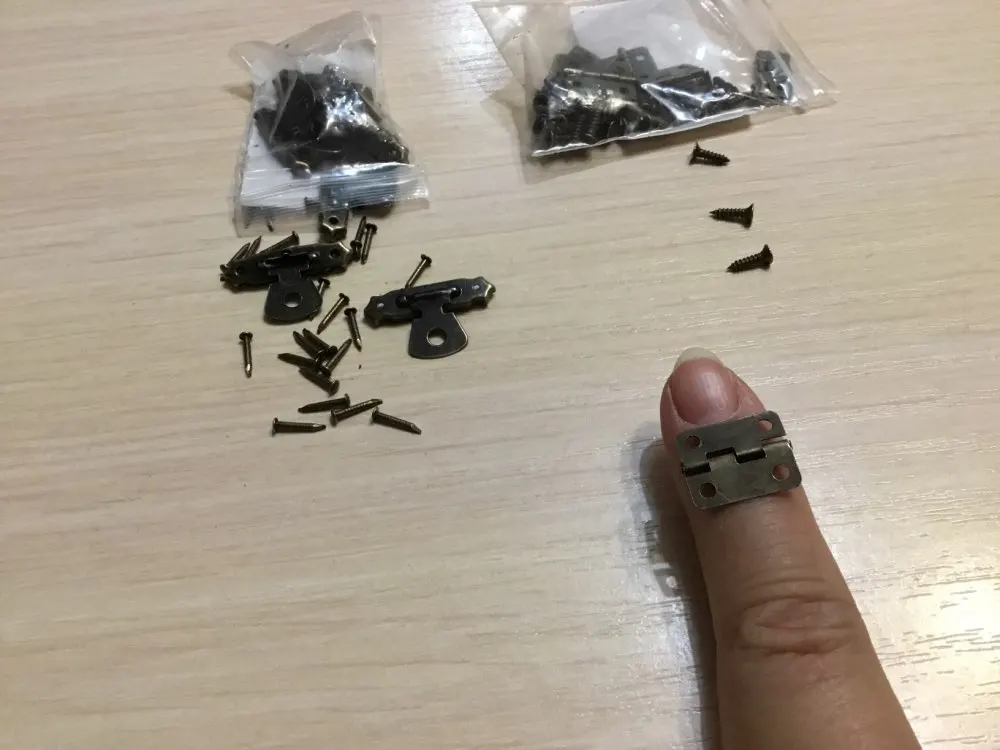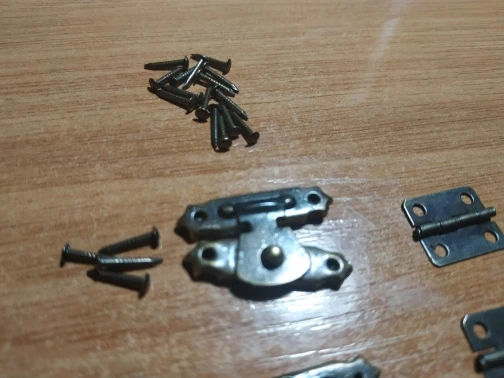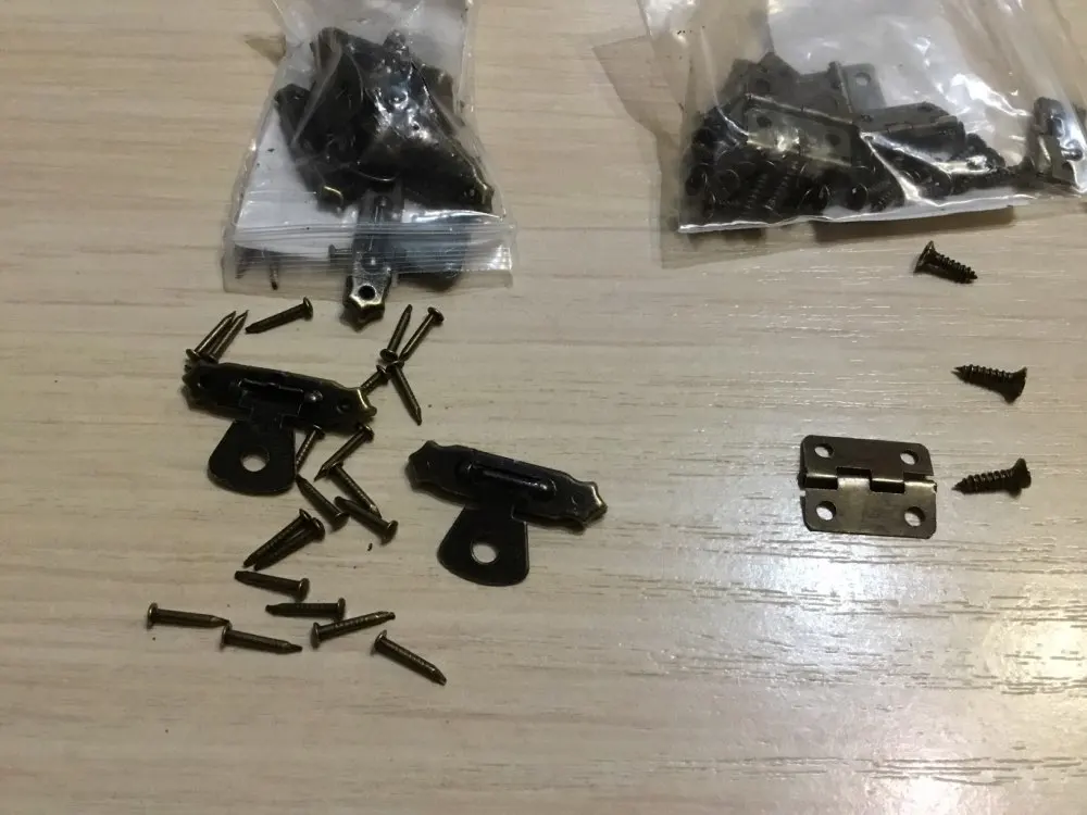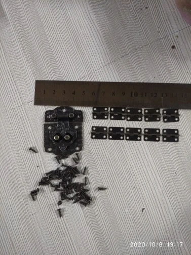 товар пришел в течении месяца, в комплекте замочки и петли+гвоздики. на фото смотряться посерьезнее, на самом деле хиплинькие