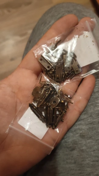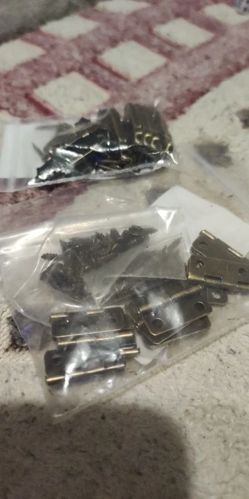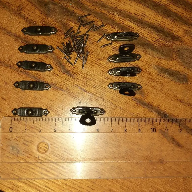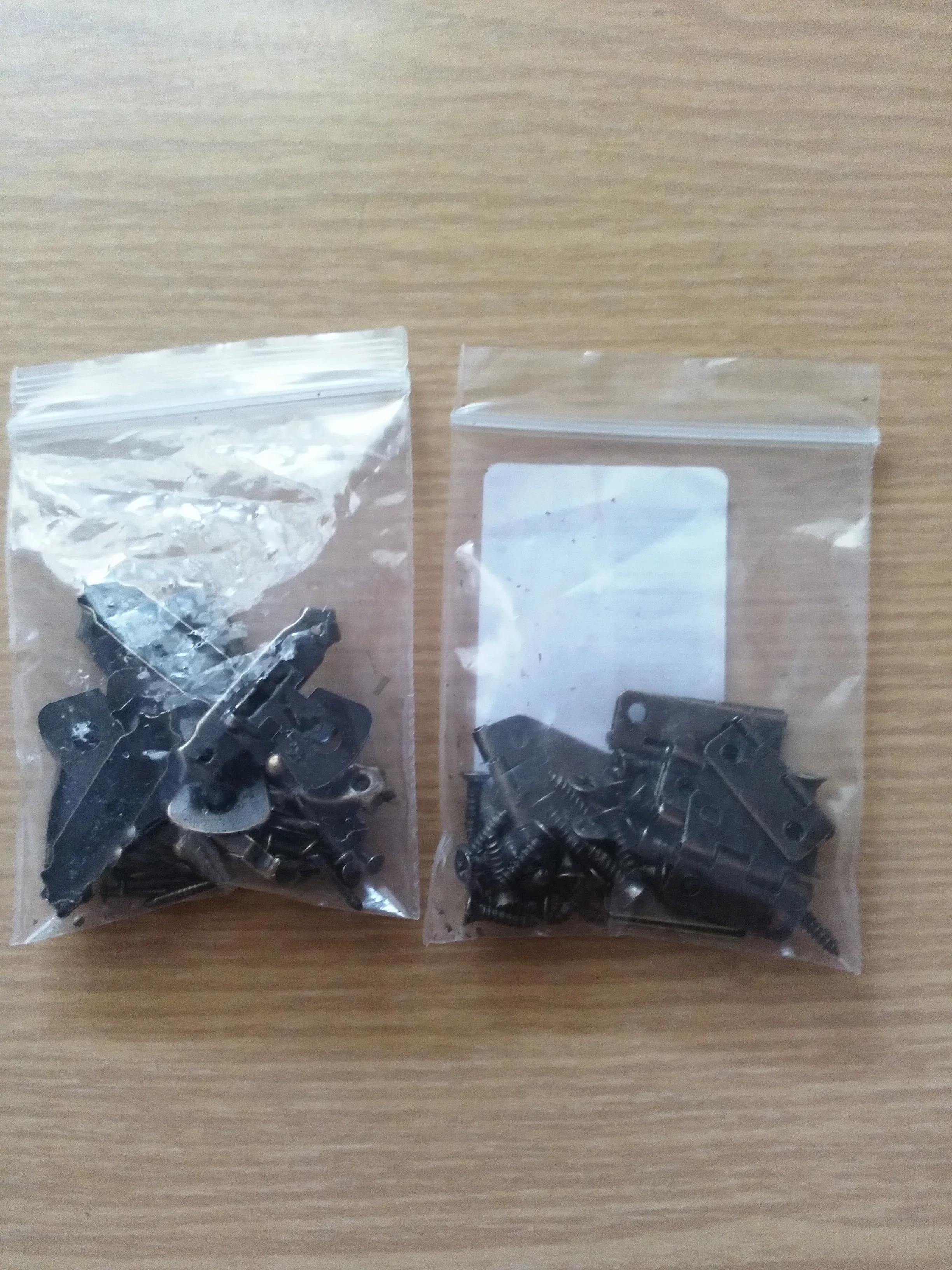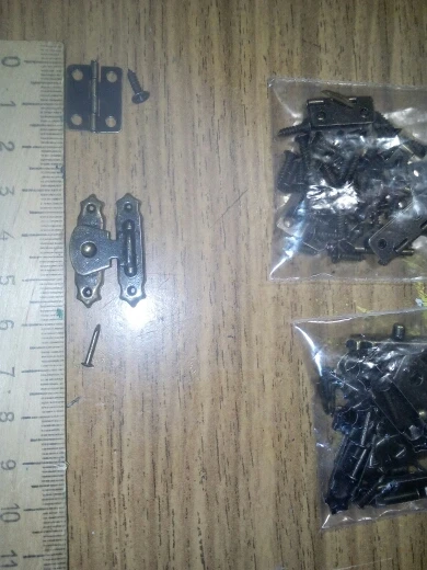 В Краснодарский край пришла посылка за месяц. Комплект очень понравился, хорошего качества, из металла, плотные, не гнутся! Вместе с замочками идут гвоздики, с закругленной головкой, а с петлями саморезы. Кстати, гвоздиков и шурупов положили больше, чем нужно (гвоздиков -35, шурупов - 55). Спасибо продавцу, покупкой довольна!!!