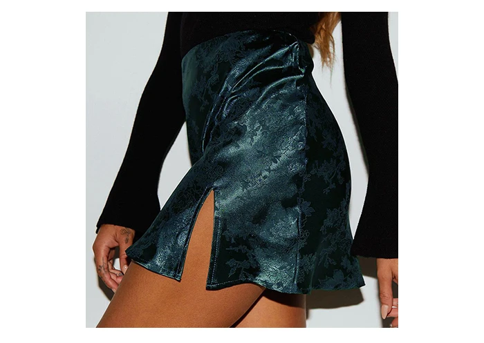 Юбка-карандаш Женская атласная, жаккардовая, с высокой талией, на молнии, с Боковым Разрезом, Y2K, 2000s, 90s, лето