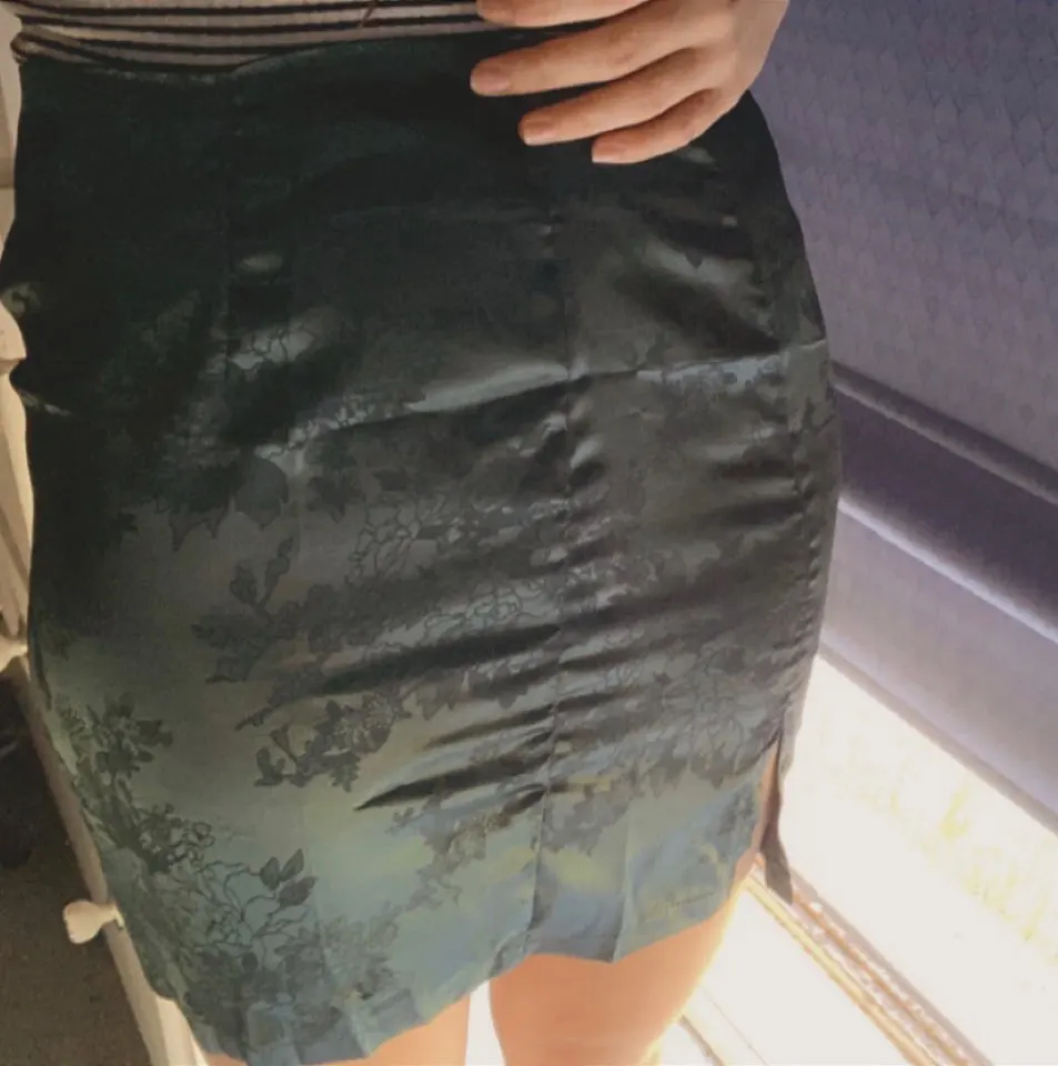 Очень мило! Тонкий материал без подкладки, но это можно ожидать по цене, и я обычно ношу шорты под юбками, в любом случае. Моя талия 26 дюймов, а размер S слишком большой, но я пришила немного эластичности на заднюю часть, и теперь он идеально подходит, когда я сижу и двигаюсь. Зеленый цвет красивый и имеет приятный блеск!