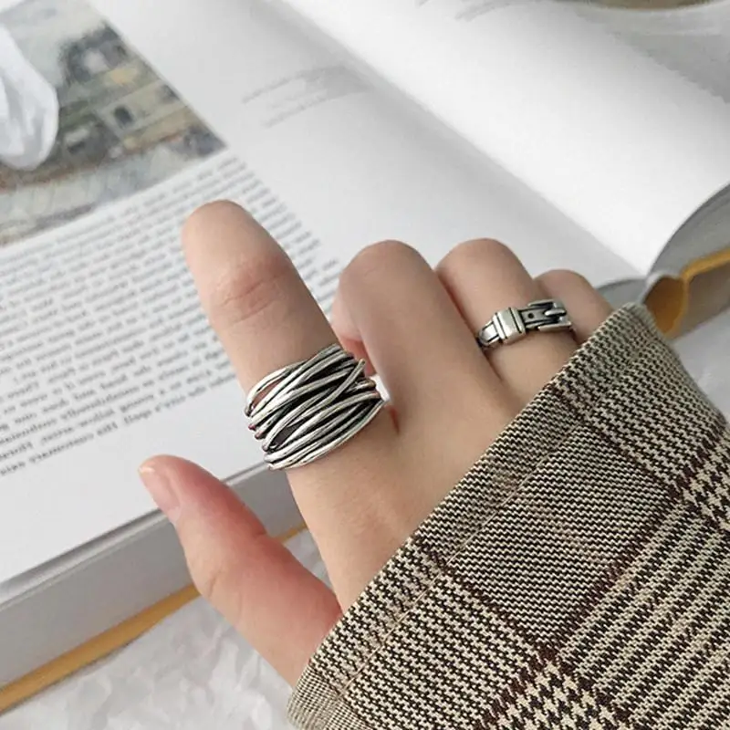 2020 простая винтажная цепь HUANZHI, многослойное тибетское серебряное регулируемое кольцо, геометрическое моделирование, металлическое украшение