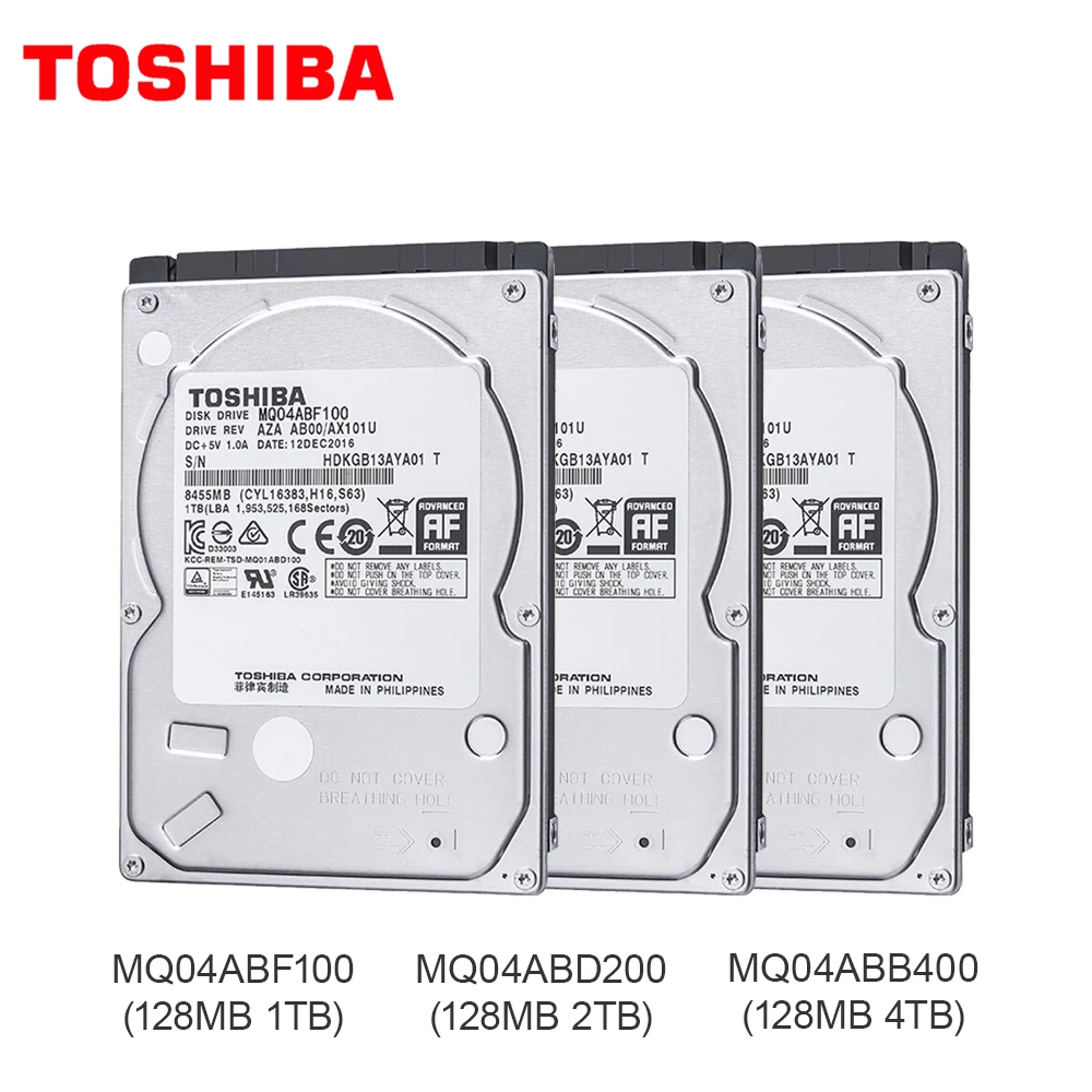 Внутренний жесткий диск TOSHIBA, 1 ТБ , 2 ТБ , 4 ТБ, 2,5 ''128 М HDD , Кэш-память для ноутбука 7 мм , 9,5 мм , 15 мм , SATA3, MQ04ABF100, MQ04ABD200, MQ04ABB400
