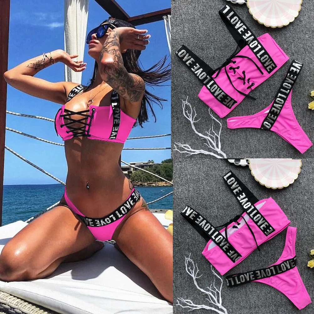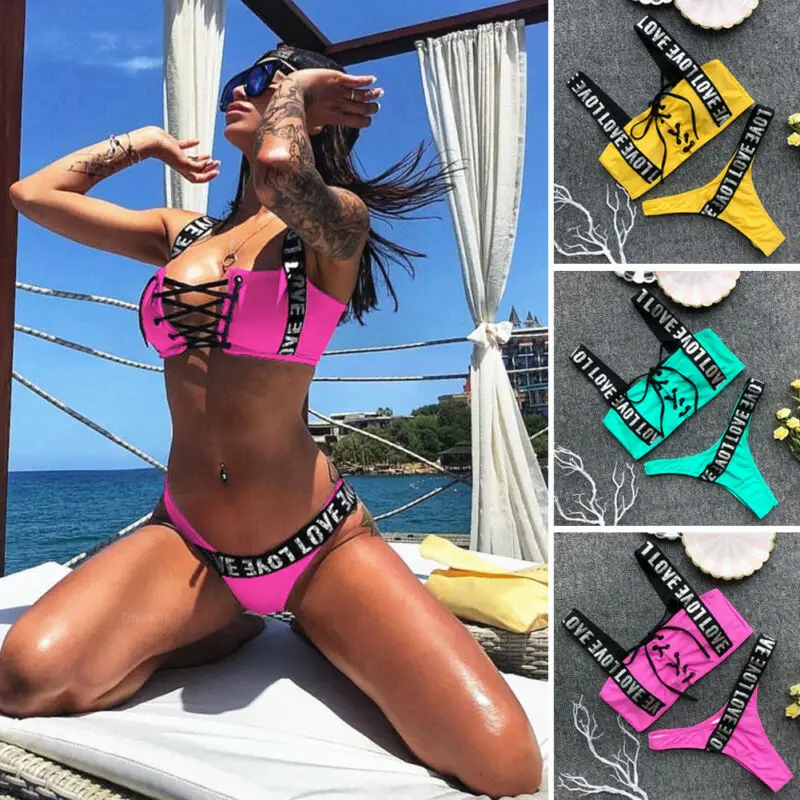 Женский летние купальники бикини набор бюстгальтер пуш-ап с мягкими чашечками купальный костюм Купальник 2020 комплекты бикини