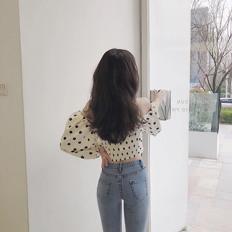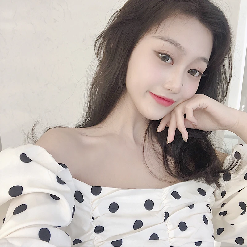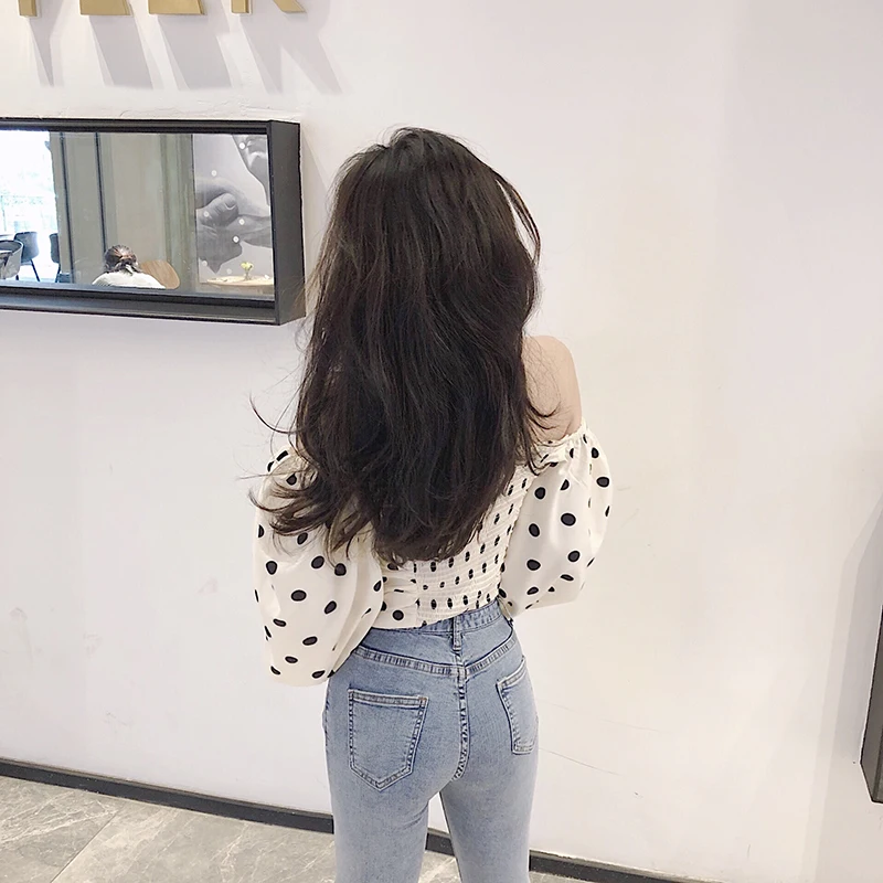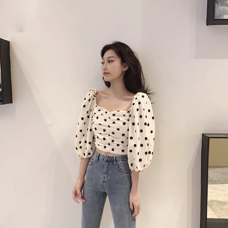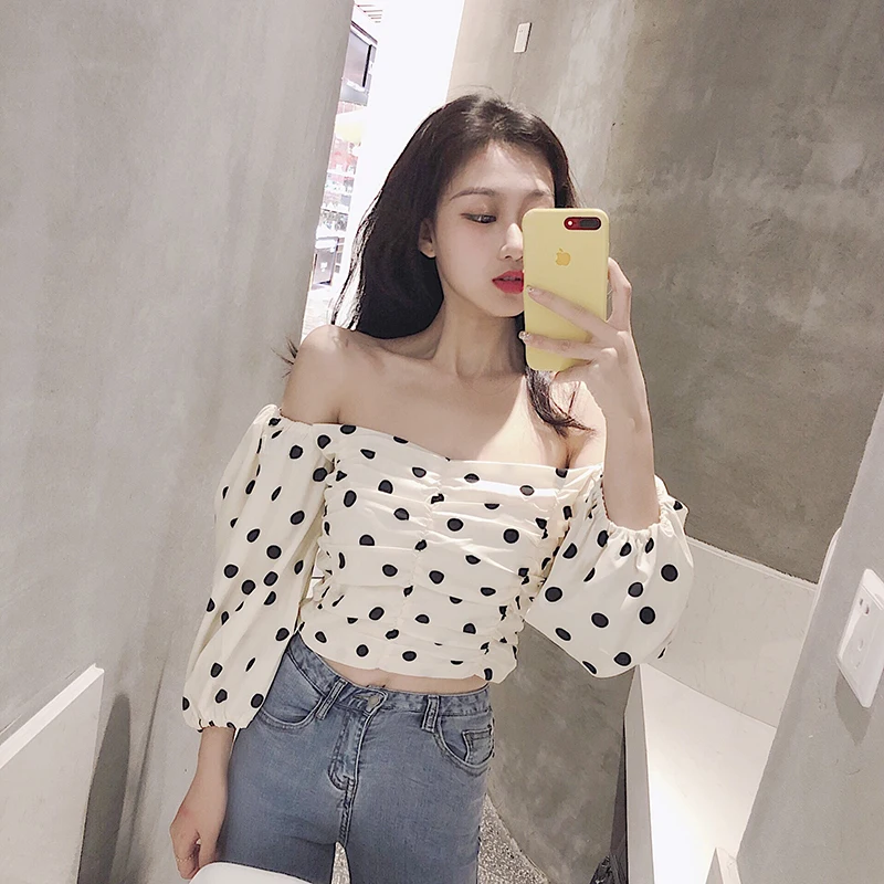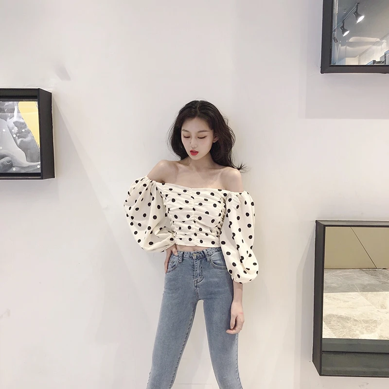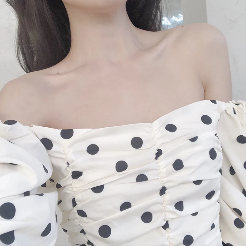 Женская блузка в горошек, с воротником-лодочкой и рукавами-фонариками
