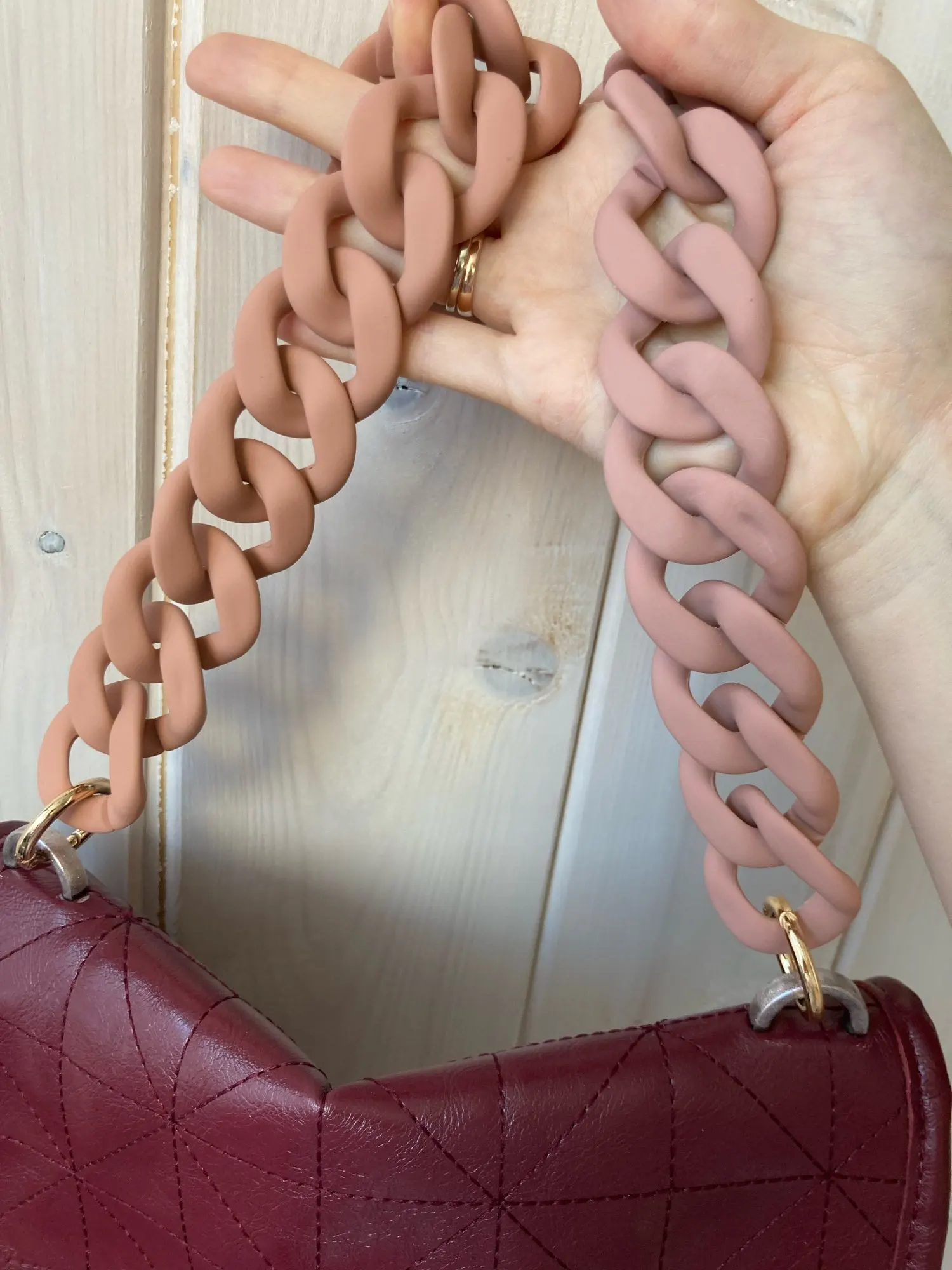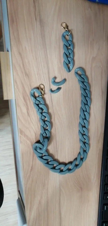 На фото цепь выглядит более объёмнее в диаметре,но и карабины не очень надёжно выглядят при носке просмотрю на долго ли хватит.