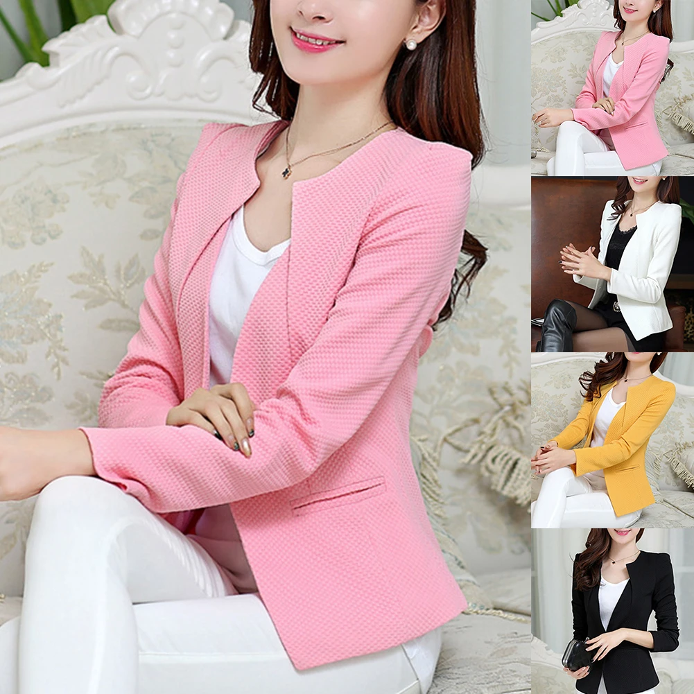 Женский облегающий Блейзер размера плюс, весенний Повседневный пиджак с длинным рукавом и одной пуговицей, Офисные блейзеры, модная верхняя одежда для работы