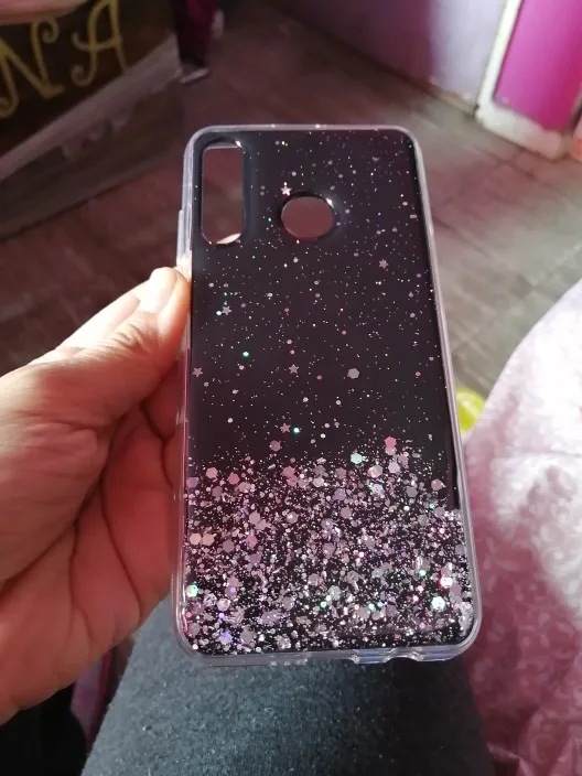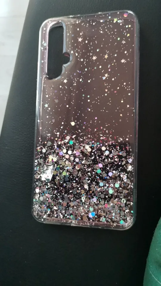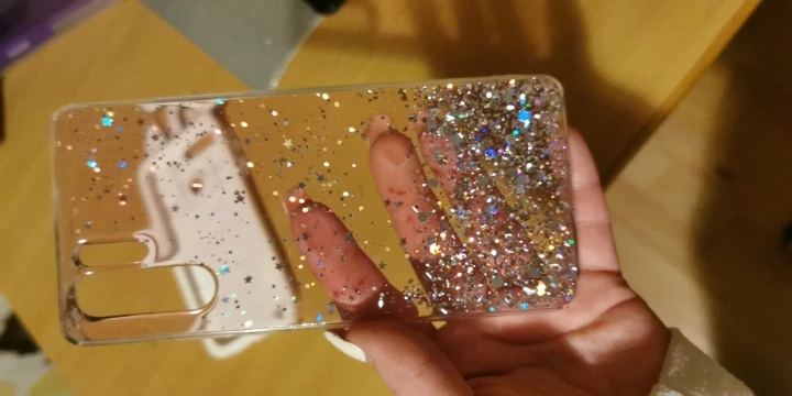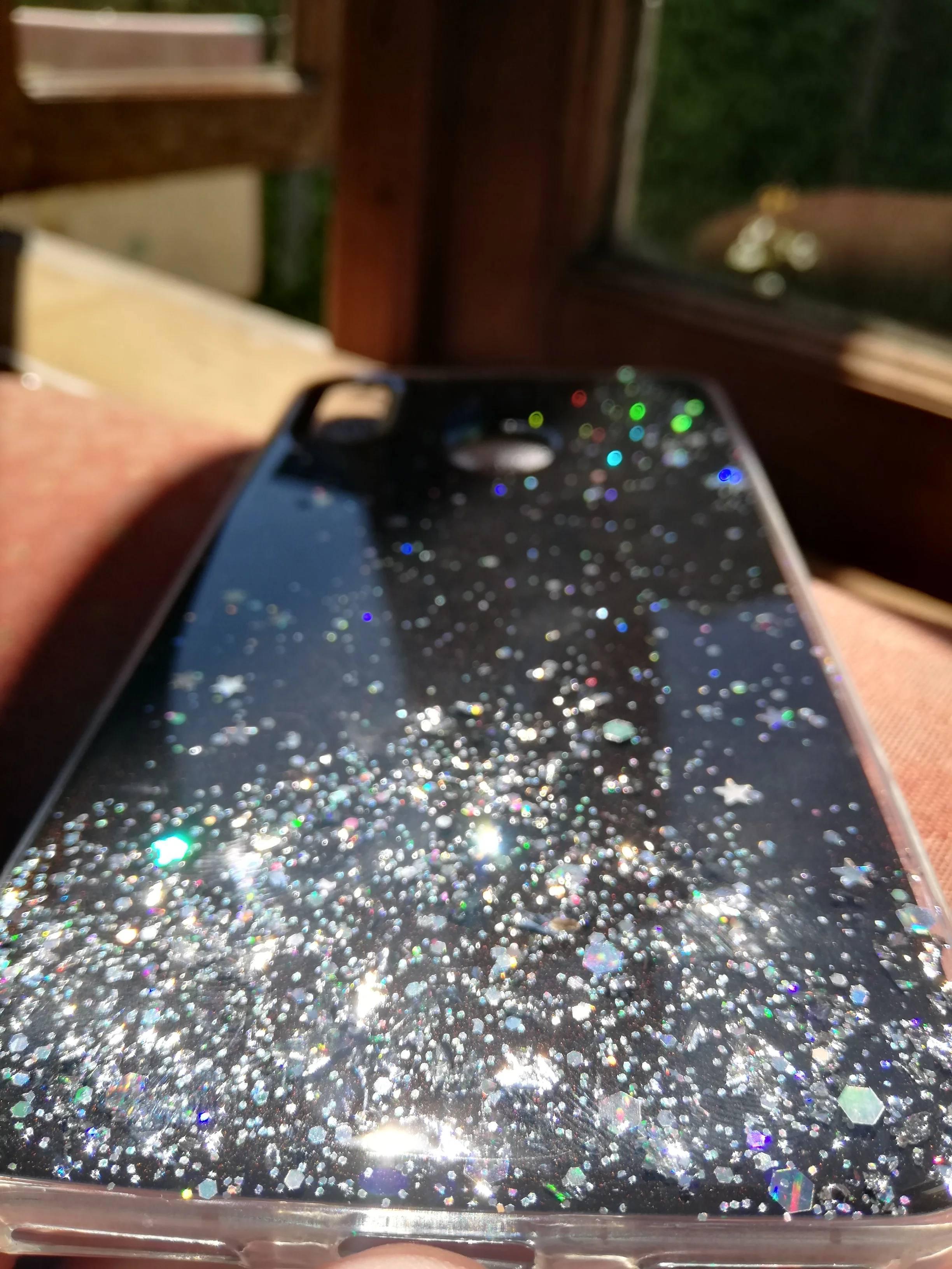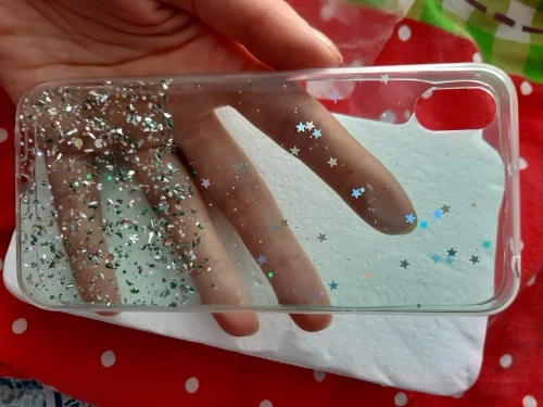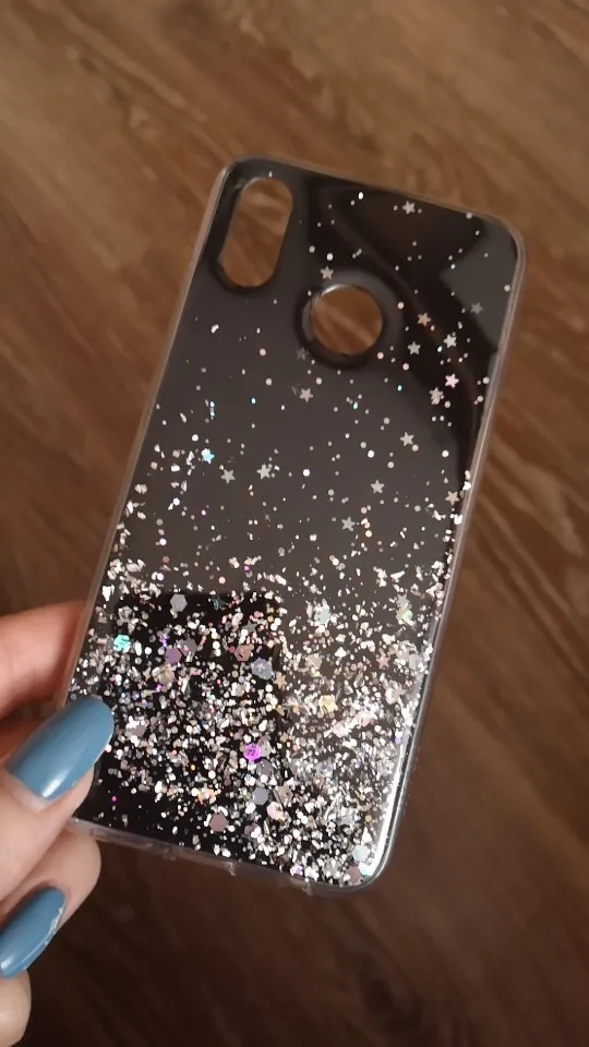 Сам по себе чехол хороший, плотный. Единственный минус - блёстки сосредоточены внизу и заканчиваются ровной полосой, а мне хотелось бы плавный переход. Ну может, это и не минус, для кого-то даже плюс)