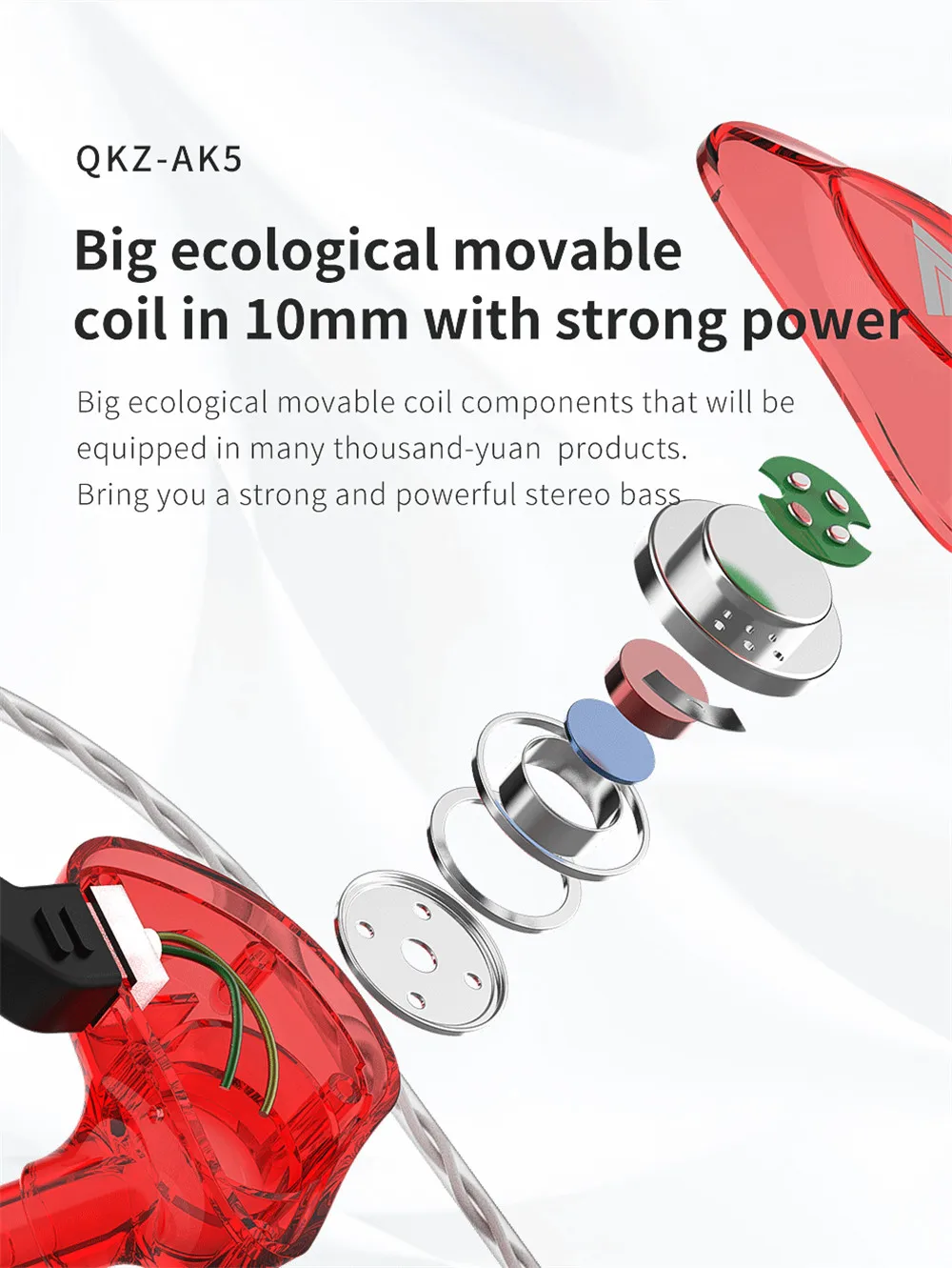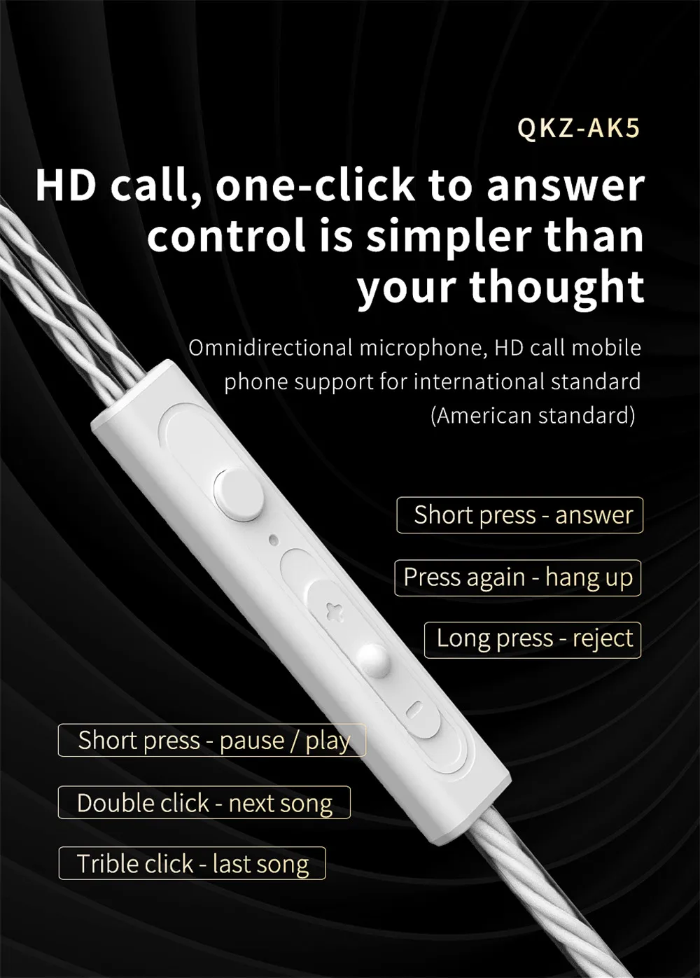 Наушники QKZ AK5, Hi-Fi гарнитура с тяжелыми басами, наушники с железным управлением, музыкальный Bluetooth-кабель, наушники с шумоподавлением