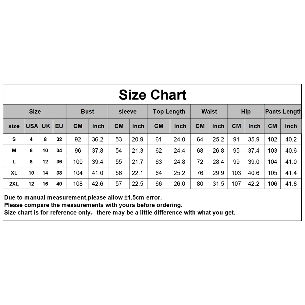 2 шт., Женский Осенний однотонный ребристый топ с круглым вырезом, штаны на завязках, спортивный костюмХарактеристики:Сплошной цвет, простой дизайн, пара с кроссовками, чтобы придать вам спортивный вид.Шнурок вокруг талии, вы можете свободно регулировать его для удобной посадки.Подходит для бега, тенниса, также отлично подходит для покупок, повседневной носки и т. д.Тип изделия: спортивный костюмТип размера: ОбычныйПол: женщинМатериал: полиэстерСтиль: спортивныйДлина рукава: длинный рукавТип шеи: круглый вырезУход За Одеждой: ручная стиркаОсобенности: однотонные, ребристые, брюки на завязкахИнформация о размере[Наш Размер S] Обхват груди: 92 см/36,2 дюйма, обхват талии: 64 см/25,2 дюйма, обхват бедер: 91 см/35,9 дюйма, длина рукава: 53 см/20,9 дюйма, длина топа: 61 см/24,0 дюйма, длина брюк: 102 см/40,2 дюйма (прибл.)[Наш Размер M] Обхват груди: 96 см/37,8 дюйма, обхват талии: 68 см/26,8 дюйма, обхват бедер: 95 см/37,4 дюйма, длина рукава: 54 см/21,3 дюйма, длина топа: 62 см/24,4 дюйма, длина брюк: 103 см/40,6 дюйма (прибл.)[Наш Размер L] Обхват груди: 100 см/39,4 дюйма, обхват талии: 72 см/28,4 дюйма, обхват бедер: 99 см/39,0 дюйма, длина рукава: 55 см/21,7 дюйма, длина топа: 63 см/24,8 дюйма, длина брюк: 104 см/41,0 дюйма (прибл.)[Наш Размер XL] Обхват груди: 104 см/41,0 дюйма, обхват талии: 76 см/29,9 дюйма, обхват бедер: 103 см/40,6 дюйма, рукав 56 см/22,1 дюйма, длина топа: 64 см/25,2 дюйма, длина брюк: 105 см/41,4 дюйма (прибл.)[Наши Размеры 2XL] Бюст: 108 см/42,6 ", обхват талии: 80 см/31,5", обхват бедер: 107 см/42,2 ", рукав: 57 см/22,5", топ Длина: 65 см/25,6 дюйма, длина брюк: 106 см/41,9 дюйма (прибл.)Примечания:Пожалуйста, обратитесь к нашей таблице размеров и выберите правильный размер.Благодаря светильник и экрана Цвет Товара может быть s светильник ly отличается из-за характеристик монитора компьютера.Посылка включает в себя:Спортивный костюм (другие не входят в комплект)-1 шт.