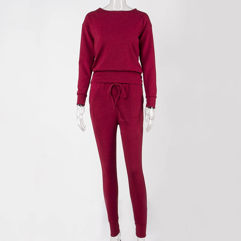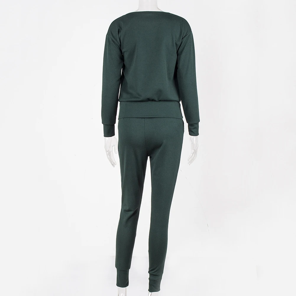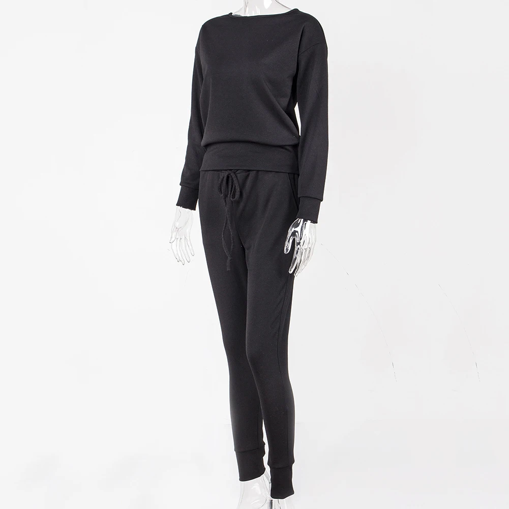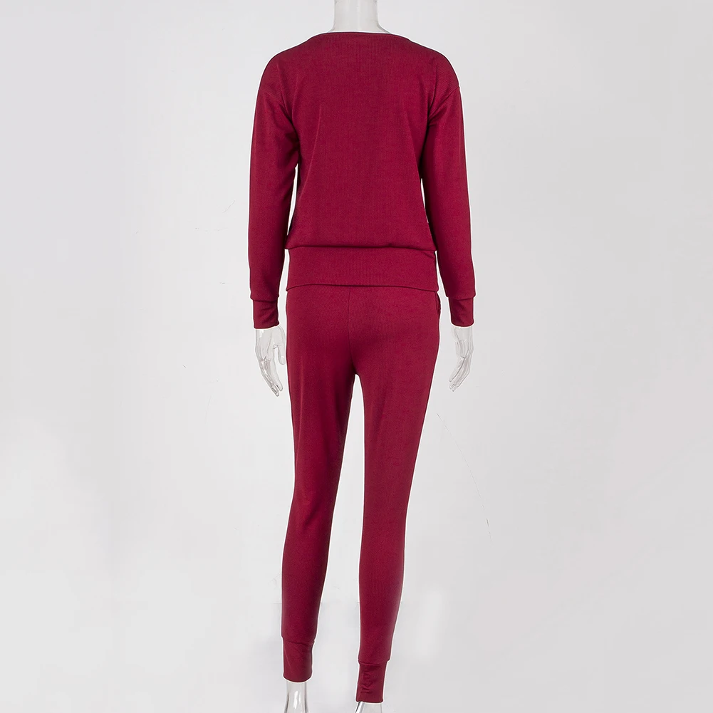 Спортивный костюм женский, осенний, однотонный, в рубчик, с круглым вырезом