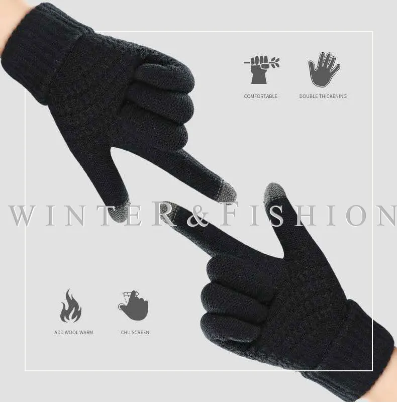 Перчатки женские, мужские, зимние, вязаные, теплые, для сенсорного экрана, Осень-осень, 2021