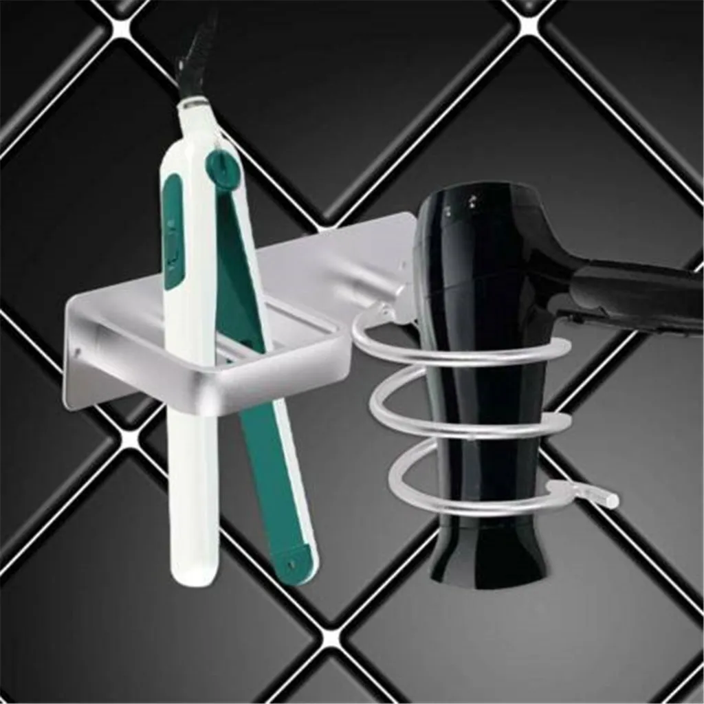 Серебристый металлический настенный держатель для фена, алюминиевая полка, выпрямитель для шкафа, стойка для хранения, стеллаж для хранения, аксессуары