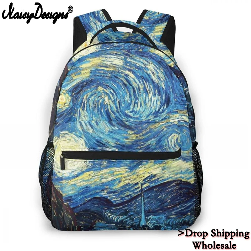 Модный женский холщовый рюкзак для детей Ван Гог, известная картина маслом, Mochila для подростков, мальчиков и девочек, Escolar, ноутбук, Прямая поставка