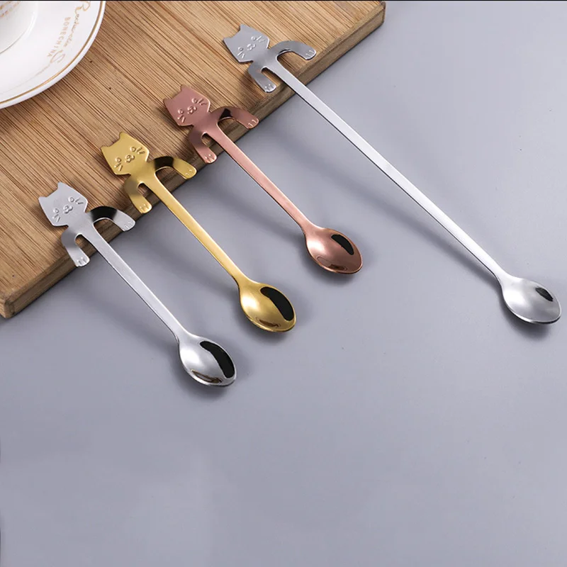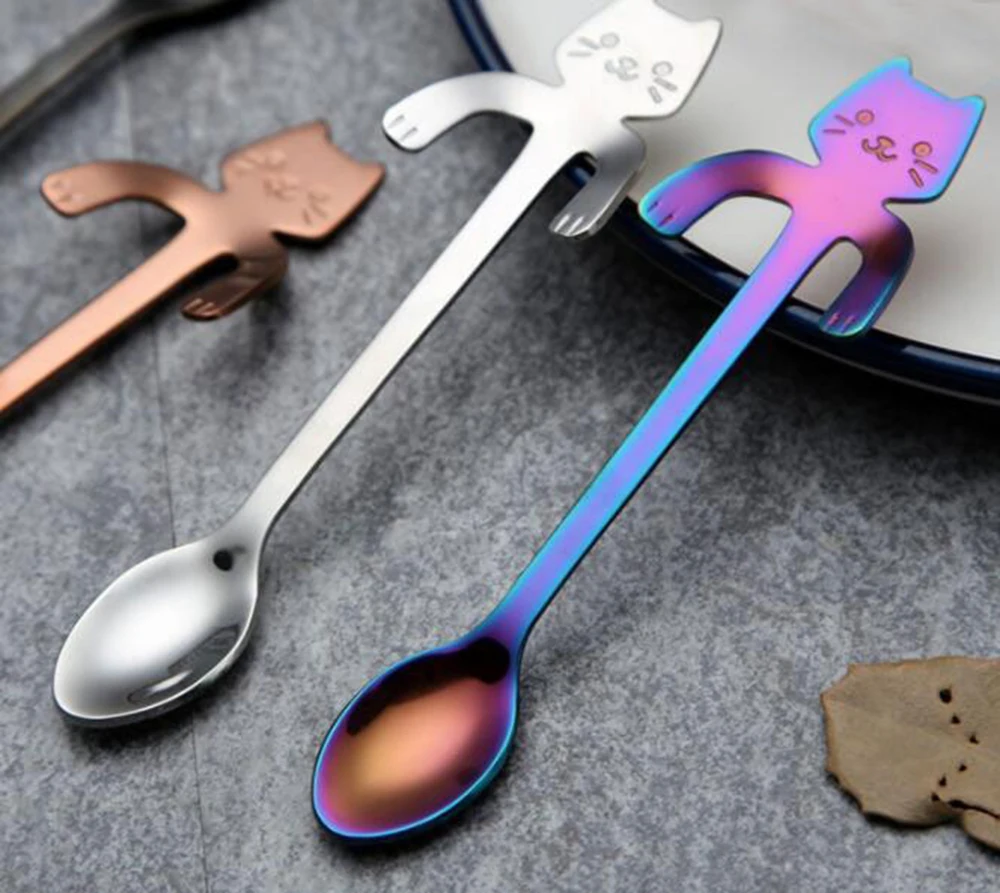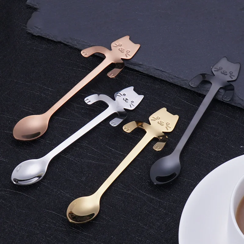 Мини-котенок из нержавеющей стали, ложки для кофе, чая, десертов, напитков, столовая посуда, набор кухонных принадлежностей