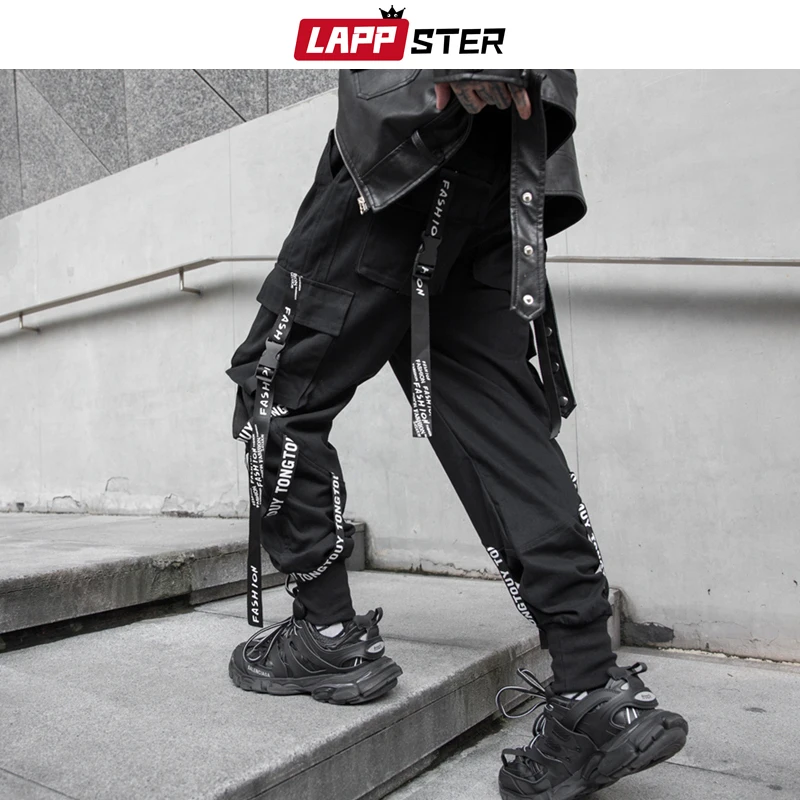 LAPPSTER Мужские Streetwear бегуны Брюки 2019 Mens Hip Hop Black Тренировочные штаны мужчины корейской Fashions Harajuku Карманы Sweatpants 5XL