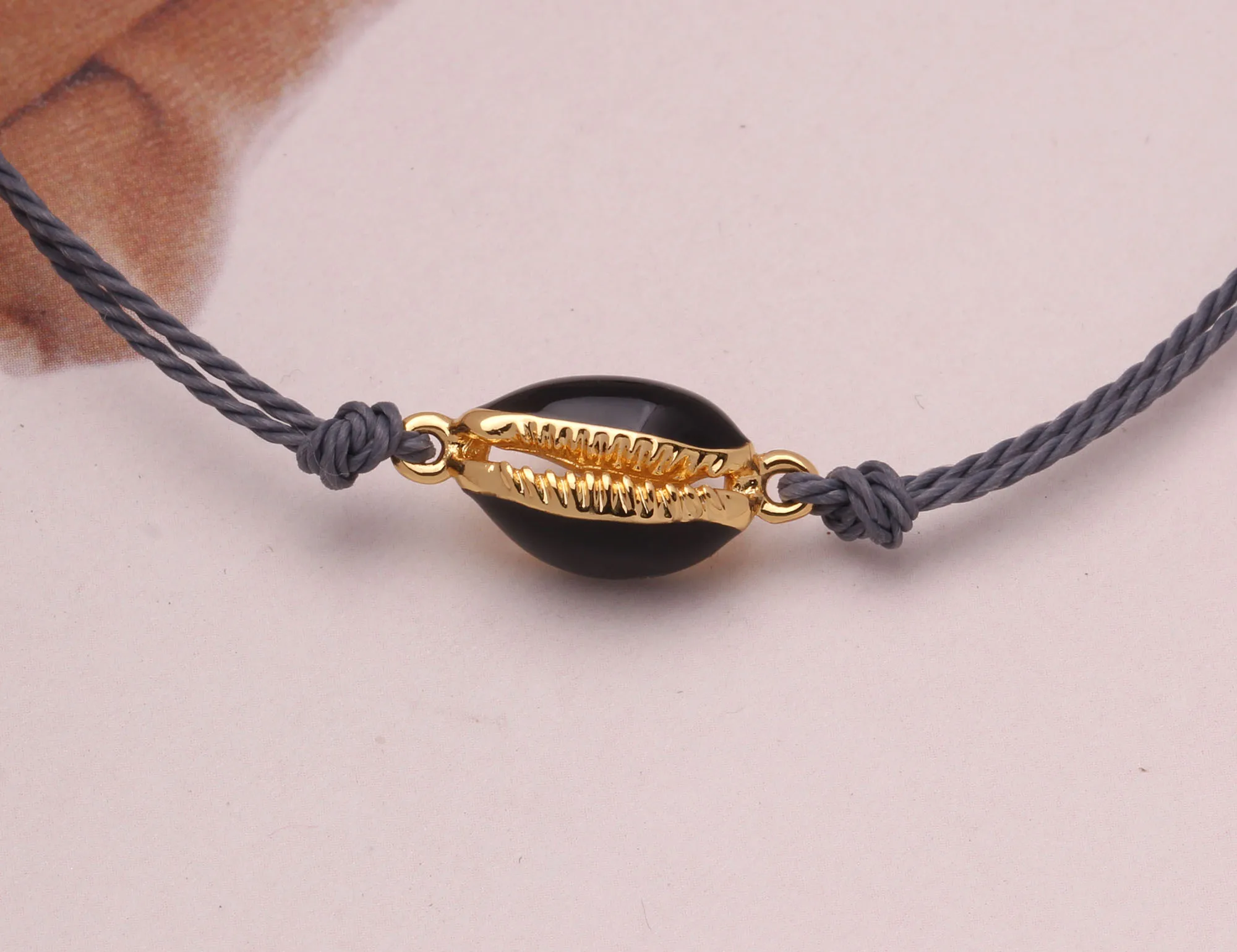 US $4,32/Цена Медный браслет Cowrie Seashell для женщин и мужчин, серый, белый, черный, белый, розовый Вощеная Веревка, высокое качество, латунные ракушки, ювелирное изделие, подарок