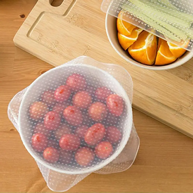 Растягивается: силиконовые обертывания растягиваются, герметичные и всасывающие уплотнения, достаточно плотно прилегают к чашкам, баночкам и так далее.