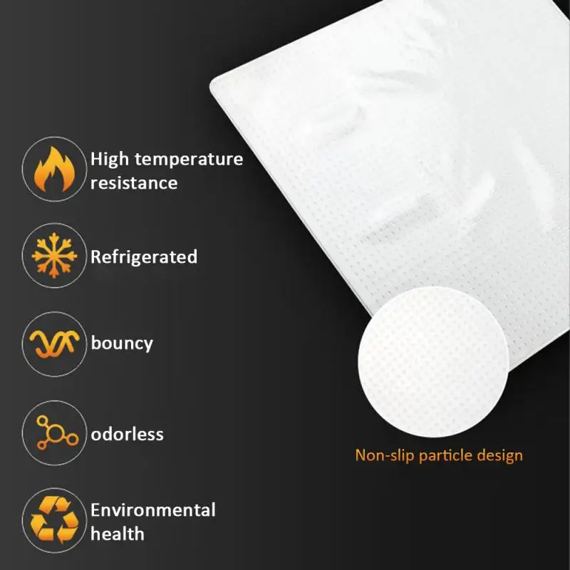 Двухсторонний дизайн: одна Гладкая сторона с сильной адсорбцией, другая сторона с приподнятыми точками эффективно противоскользит, может служить как планшетный коврик или нескользящий коврик для открытия банки.
