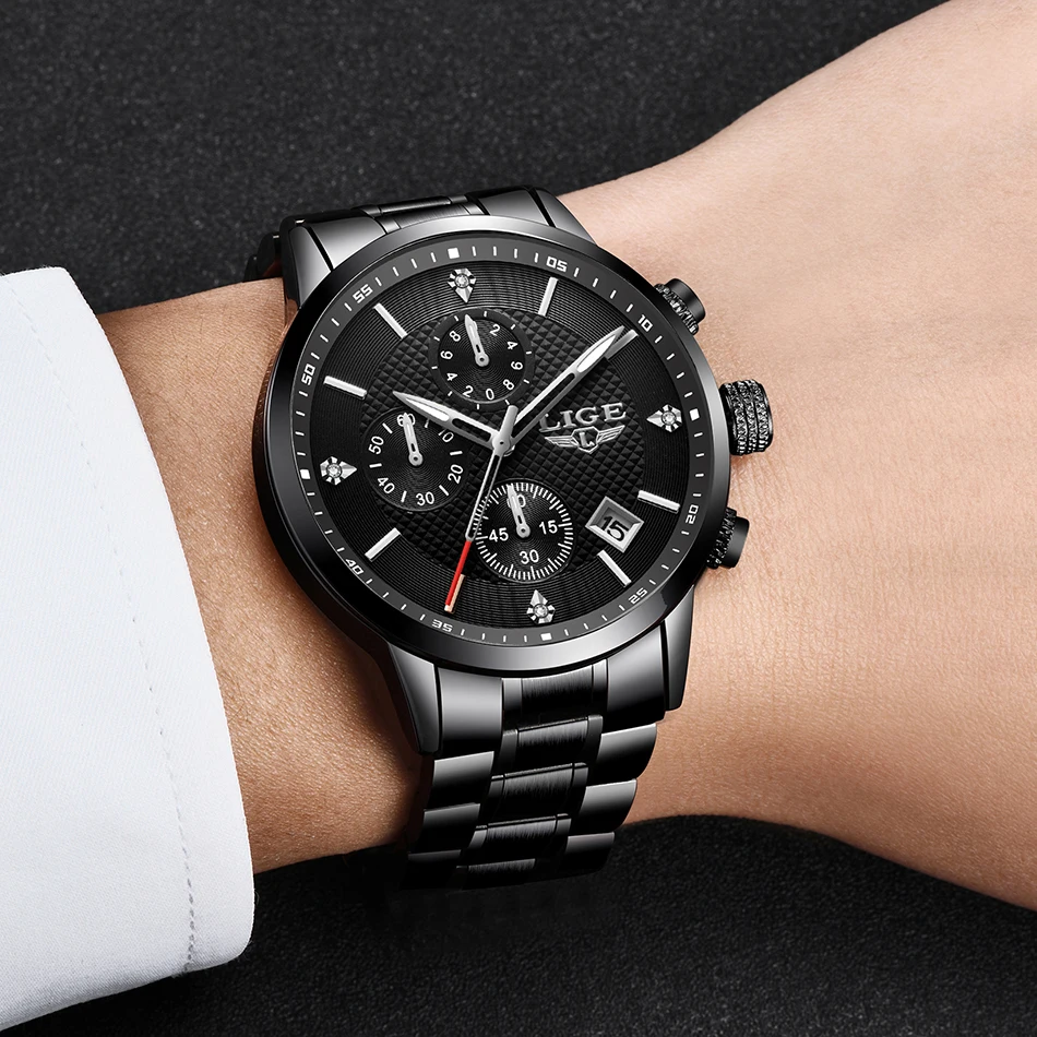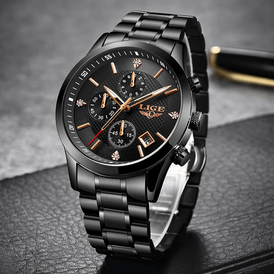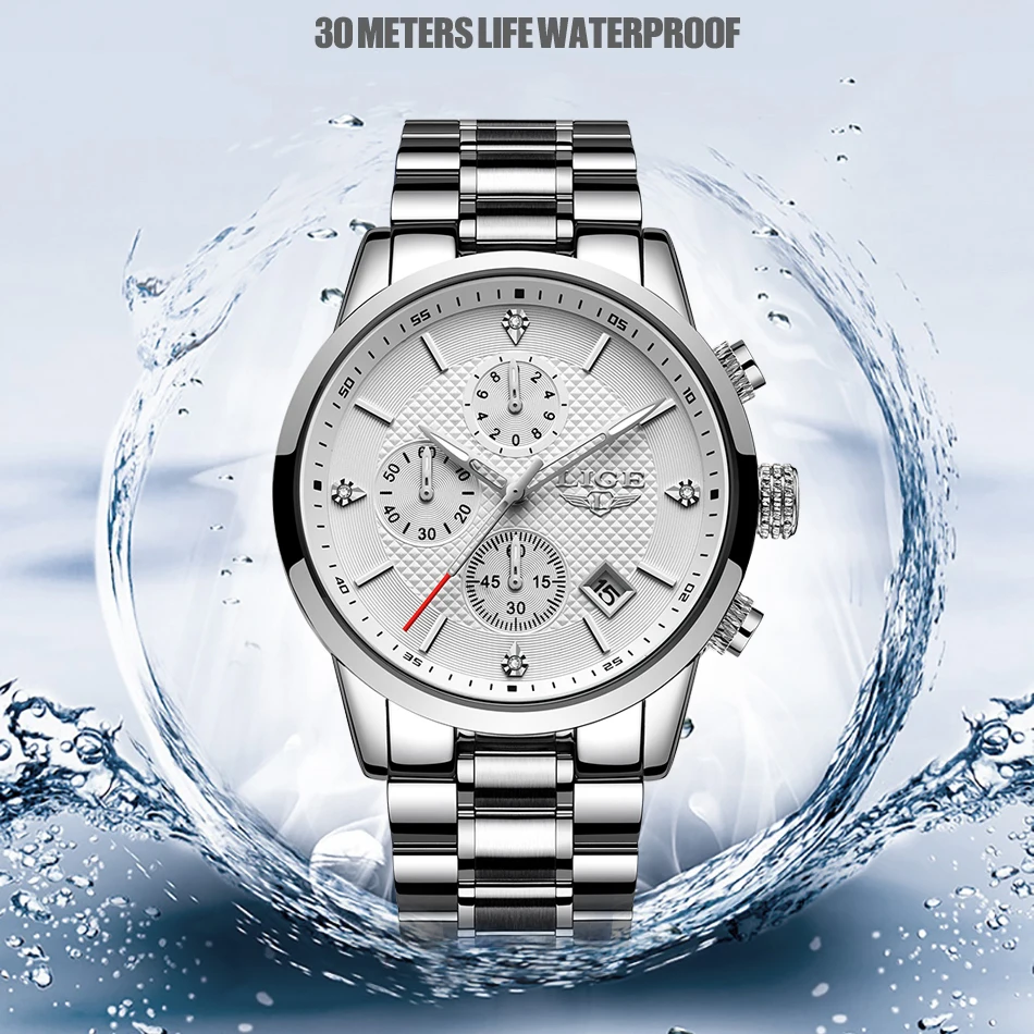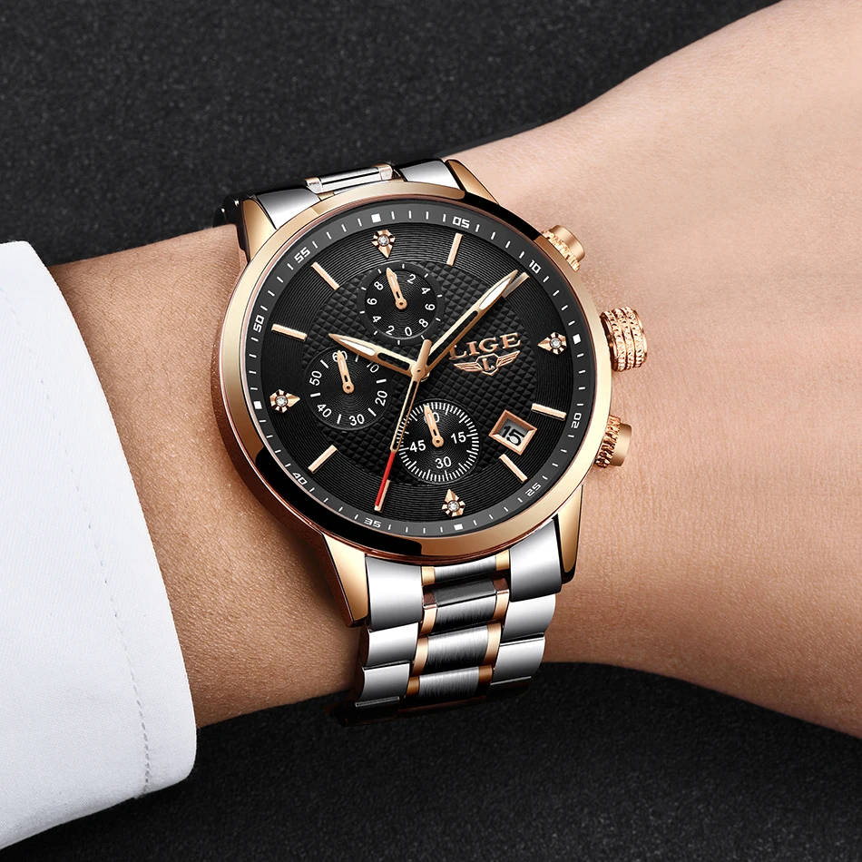 Часы LIGE Мужские кварцевые с хронографом, водонепроницаемые, из не...