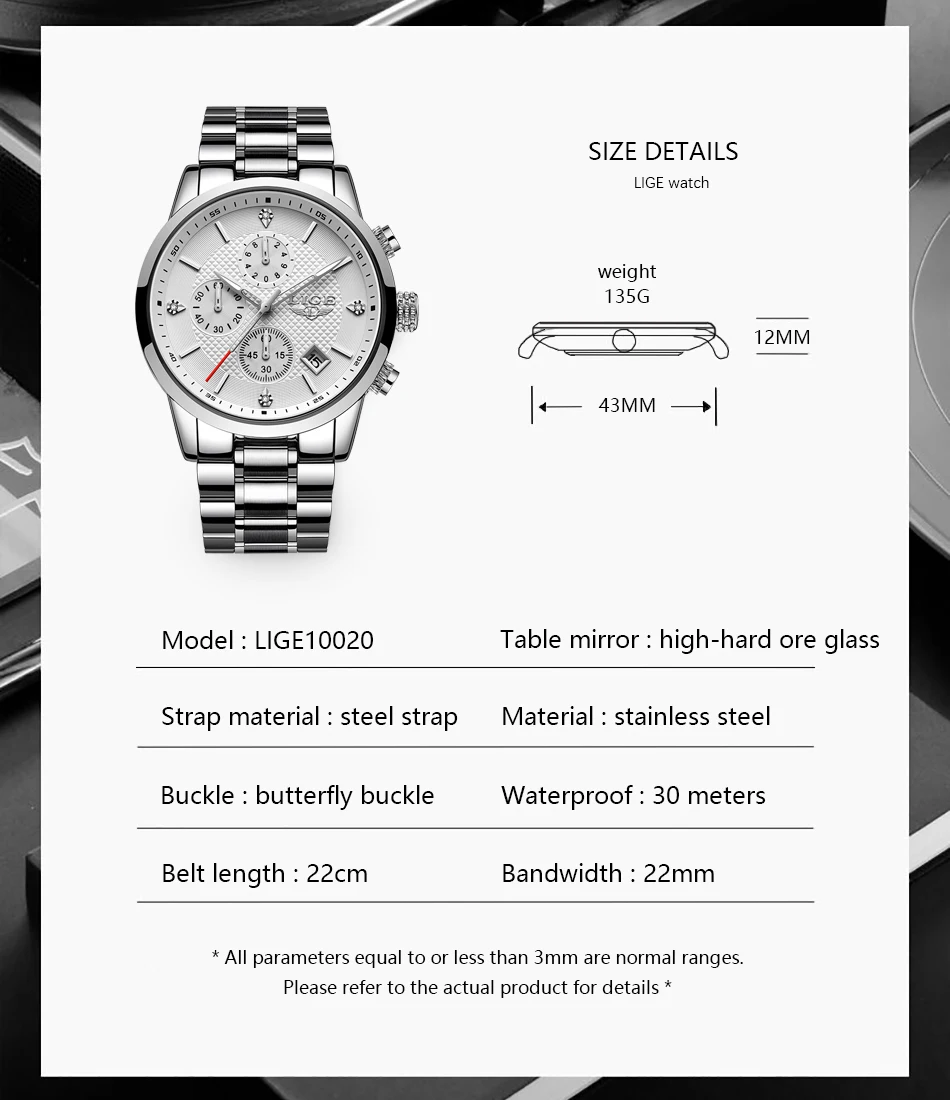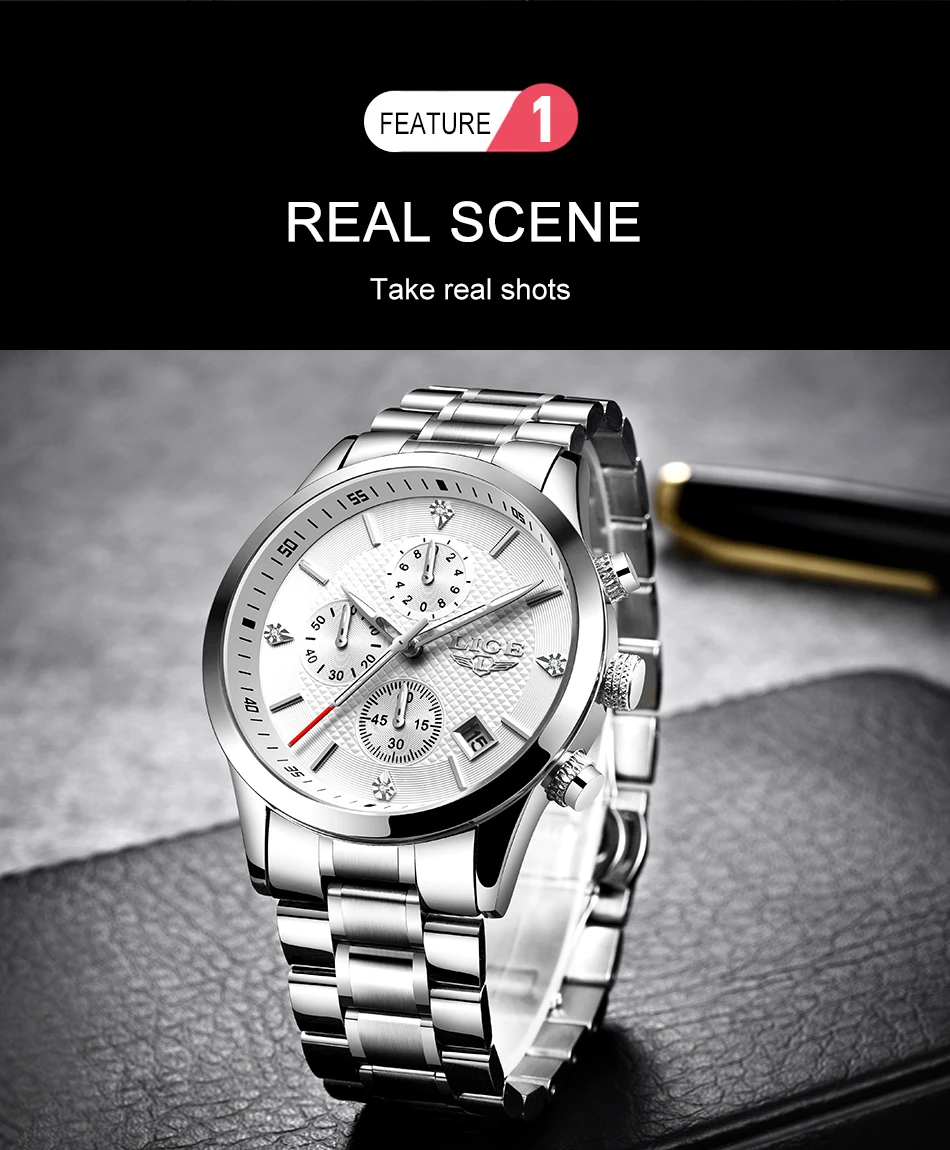 Часы наручные LIGE Мужские кварцевые с хронографом, водонепроницаем...