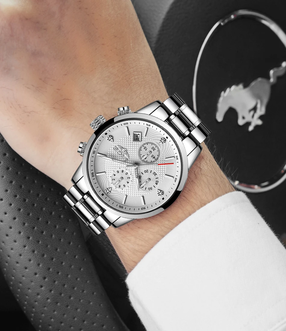 Часы. С хронографом, автоматическим календарем, водонепроницаемым, противоударным, светящимся и другими функциями; Подходит для всех случаев.