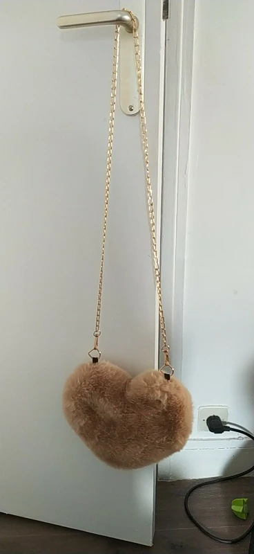 Сумочка пришла быстро, но к сожалению она была с разорванной напополам целью (то есть, звенья были разъединены, открыла спор, и деньги сразу вернули! Красивая, приятная на ощупь, но очень не вместительная, если честно) Кроме ключей, наушников и бальзама для губ, больше ничего и не положишь) ни паспорт, ни даже телефон, и тот не помещается)) Но мне нравится, что она лёгкая и мягкая, зимой очень мило выглядит!) Кто любит милые вещи, очень даже рекомендую) Спасибо за быструю доставку!)