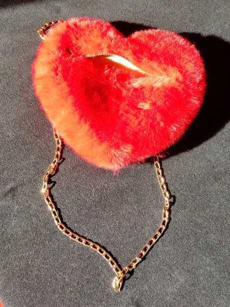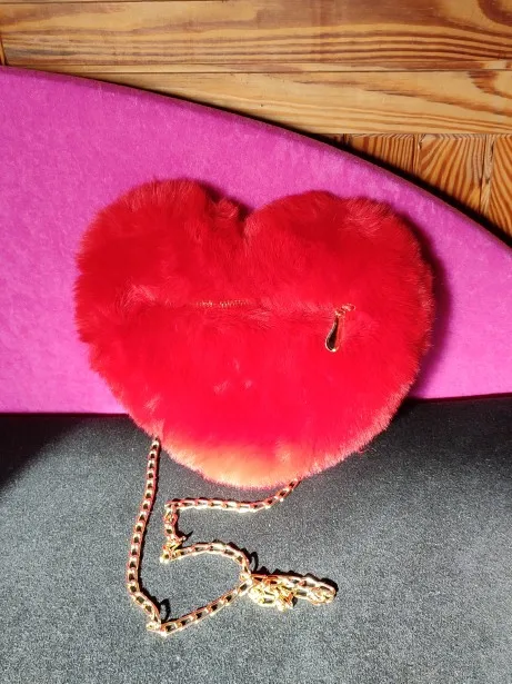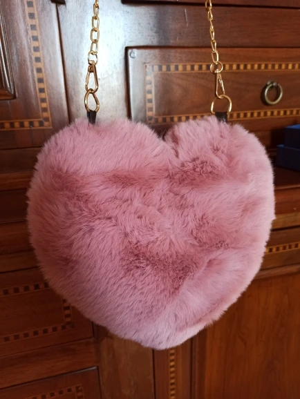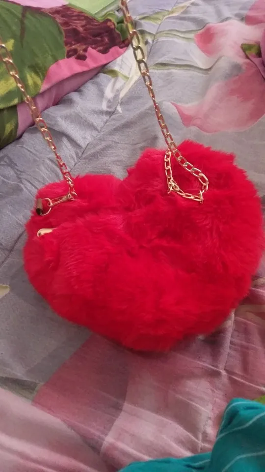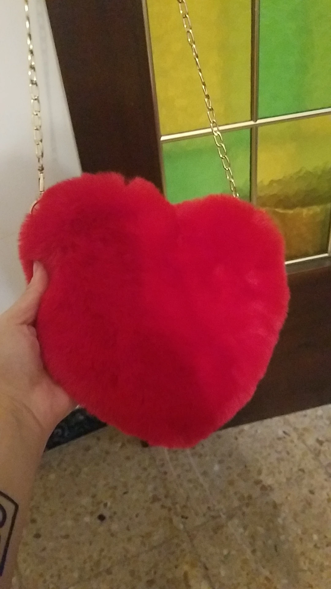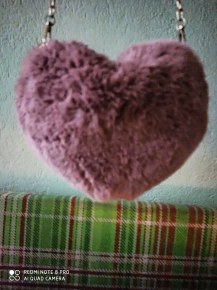 Миленькая сумочка-сердечко из искусственного меха. Пушистая, как мягкая игрушка) У продавца в наличии 7 цветов:красный, серый,черный,белый,бежевый и 2 оттенка розового. Цепочка из лёгкого металла золотистого цвета длиной 110см крепится на карабинах. Ее можно отстегнуть, и останется просто сердце. Сзади молния. Внутри 1 отделение с подкладкой из кож.зама. Размер сердца примерно 25*23 см. Отличная идея для подарка. Рекомендую