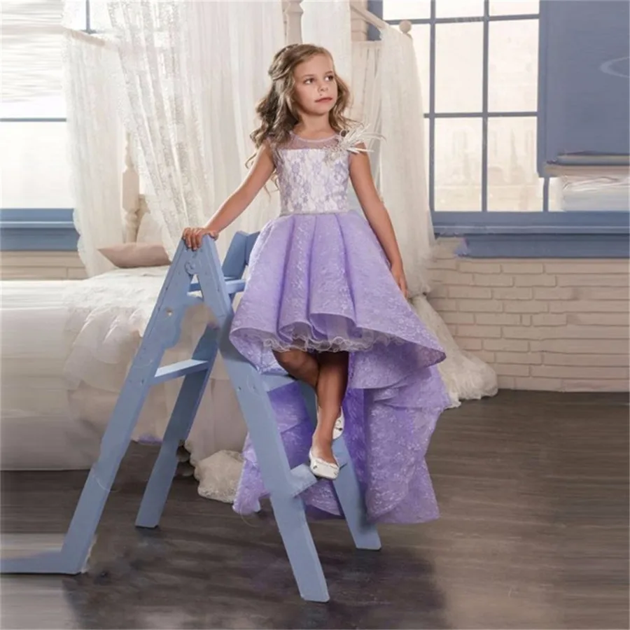 Новые фиолетовые платья для святой причастия для девочек, кружевные платья без рукавов с аппликацией и цветами для девочек, для свадеб, детский наряд для конкурса и выпускного вечера