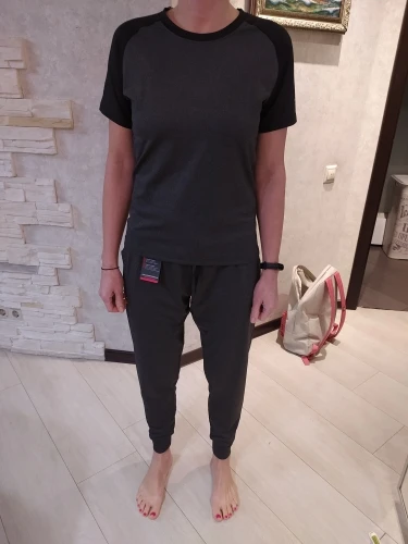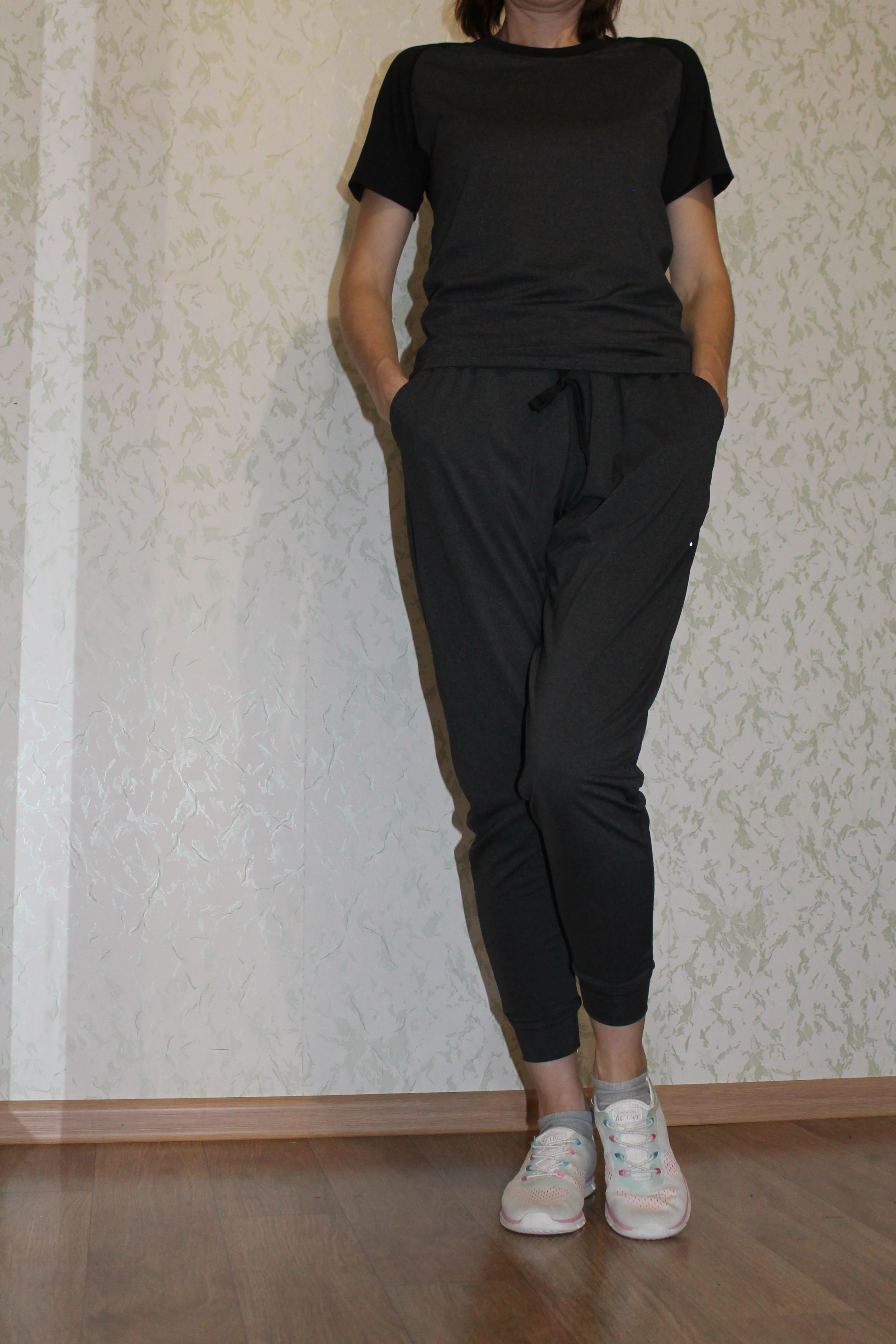 Костюм просто отличный, пошит качественно, нитки не торчат, швы ровные. Ткань приятная к телу. Для тренировок самое то. Единственное, на рост 169 штанишки чуть коротковаты по длине, но для меня это не критично и широковаты на попе (ОБ 90), но я целенаправленно искала такой фасон штанов и плюс еще заказала больше на размер. Футболка на ОГ 86 тоже не в обтяг. Так что, кто хочет, чтобы обтягивало все места, берите размер поменьше. С продавцом не общалась. Продавцу спасибо за быструю отправку и качественный товар.