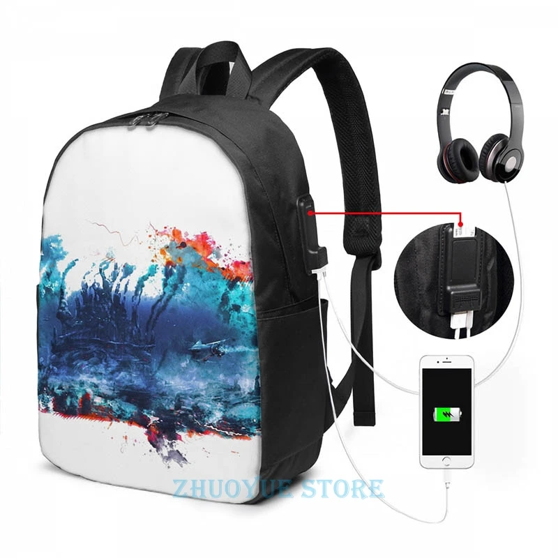Забавный рюкзак с графическим принтом Subnautica с USB-зарядкой, мужские школьные сумки, женская сумка, дорожная сумка для ноутбука