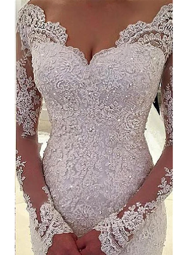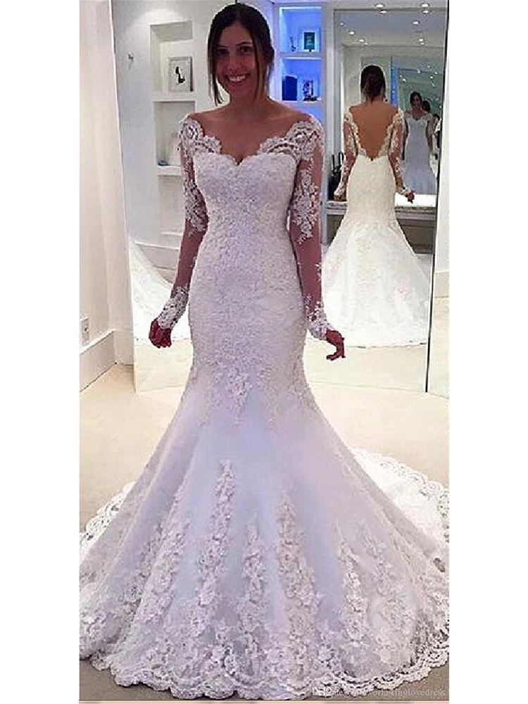 Vestido De Noiva Роскошные одежда с длинным рукавом и кружевной аппликацией Свадебные платья для женщин бисером V образным вырезом спинки Русалка свадебное платье 2021 по индивидуальному заказу