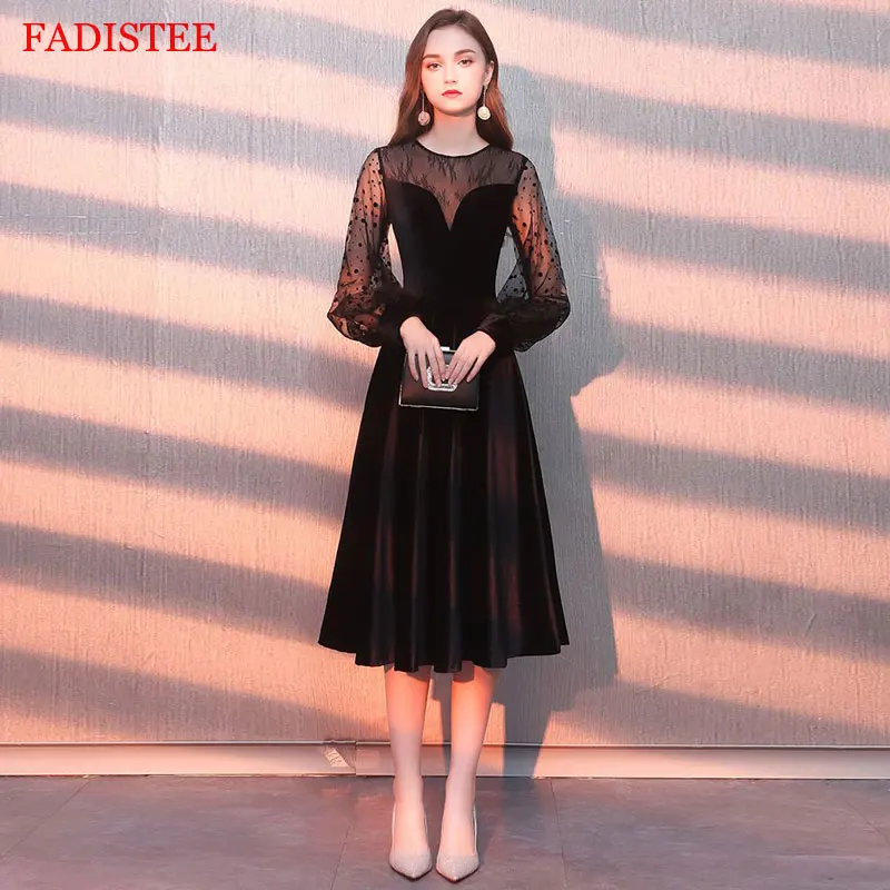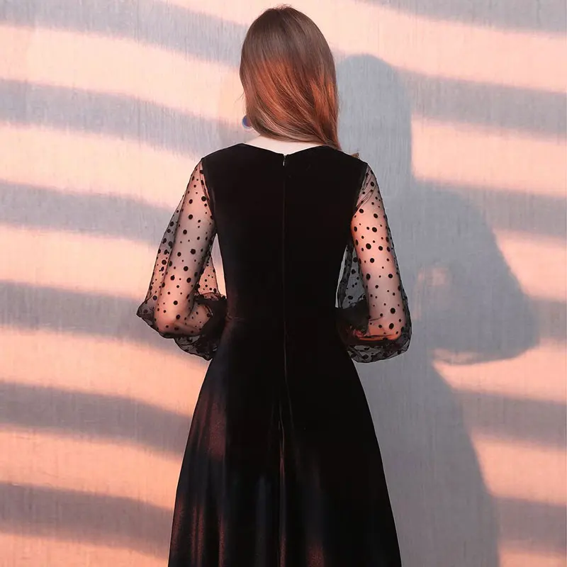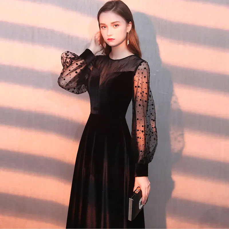В мусульманском стиле с длинным рукавом черные кружевные велюровые Платья для вечеринок, вечерние платья для выпускного вечера