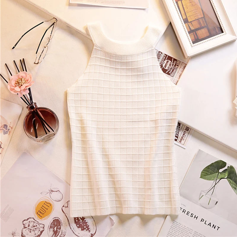 2022 летний резервуар для поддержания свежести Топ Модный свободный винтажный сексуальный Универсальный тонкий вязаный базовый укороченный топ с открытыми плечами сексуальный топ