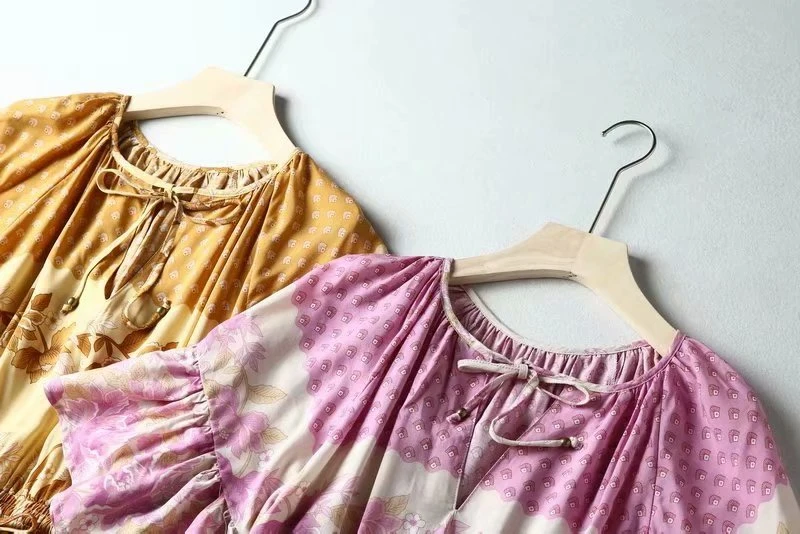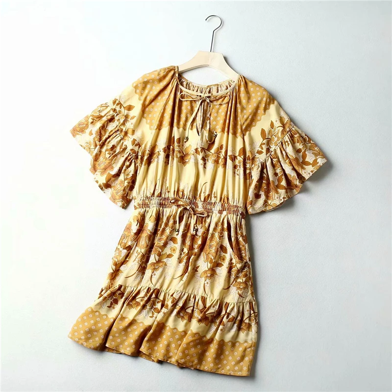 Винтажное шикарное женское платье в стиле хиппи с цветочным принтом и поясом, богемное мини-платье с эластичной талией, женские платья в стиле бохо с расклешенными рукавами, платья