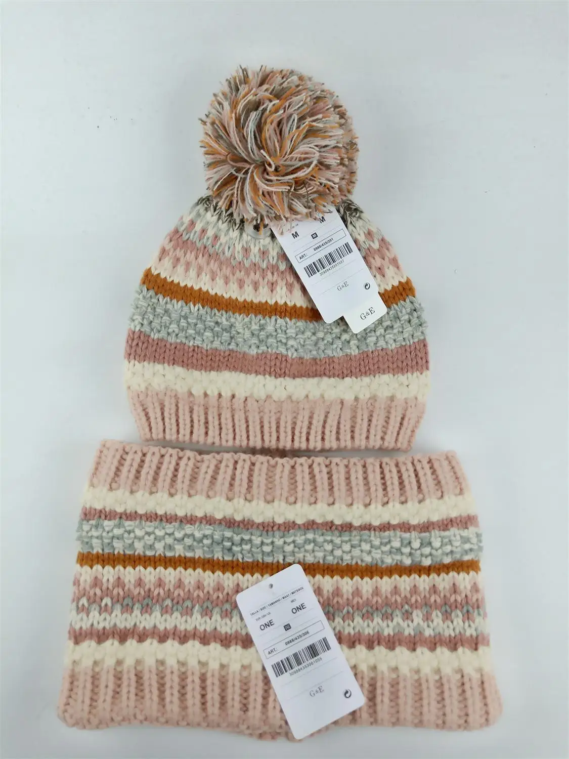 Новинка 2021, красивая вязаная акриловая шапка в полоску и вязаный акриловый шарф, комплект из двух предметов для маленьких девочек, детей, маленьких девочек