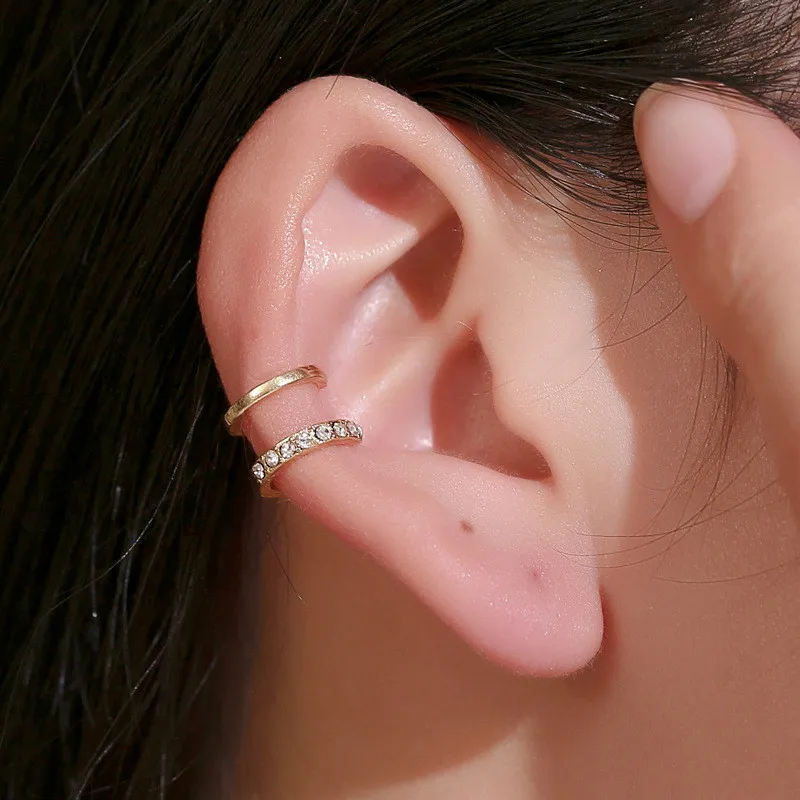 Двойной u-образные серьги вокруг уха клипсы с кристаллами для женщин новые циркониевые серьги ювелирных изделий в Корейском стиле Простые двойная линия клипсы для ушей в форме