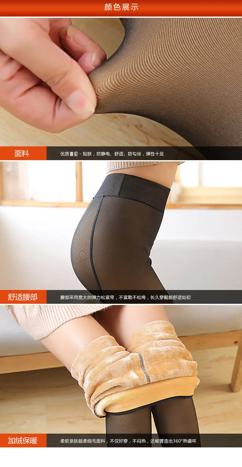 Зимние чулки для женщин, теплые колготки, флисовые полупрозрачные к...