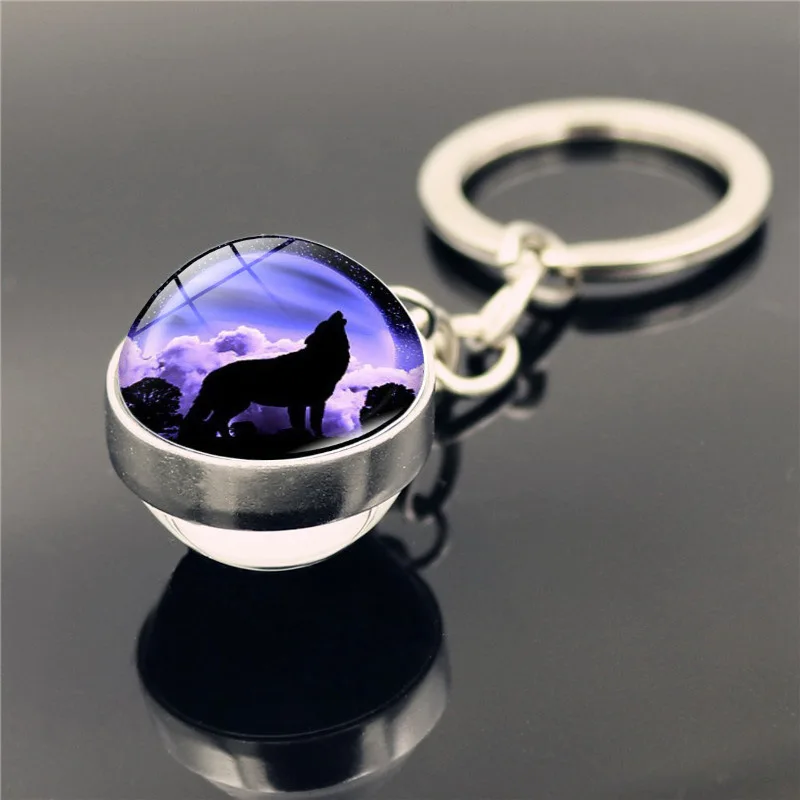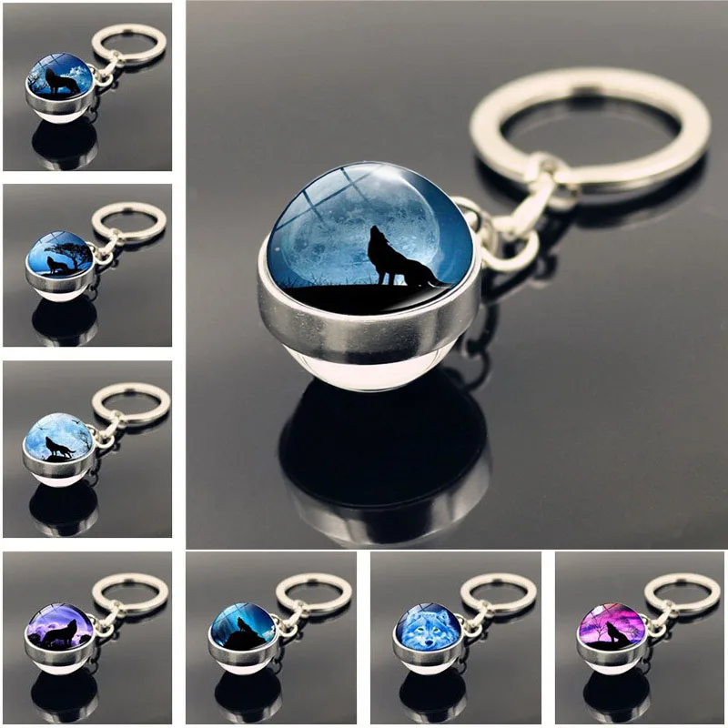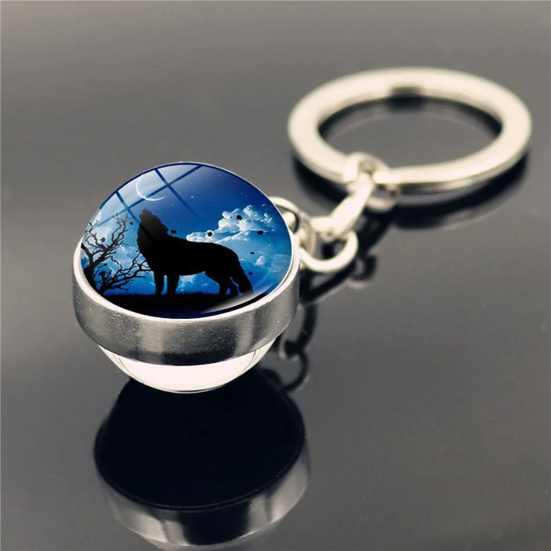 Волк и брелок луна двухсторонний стеклянный шар кулон хрустальный шар мода голова Волка Сфера брелок животное брелок подарок ювелирные изделия