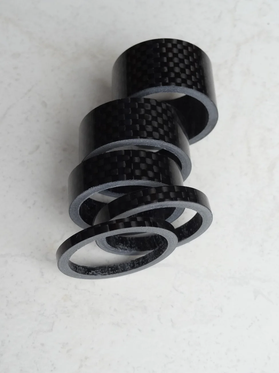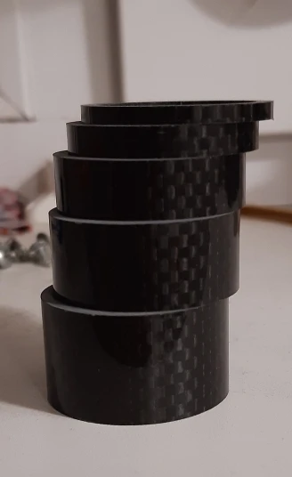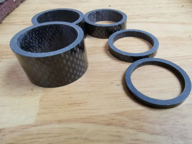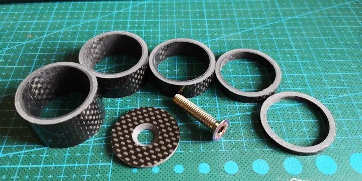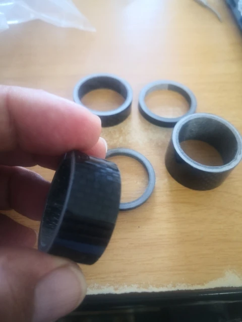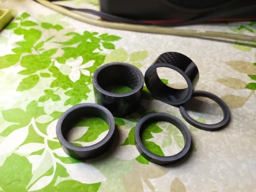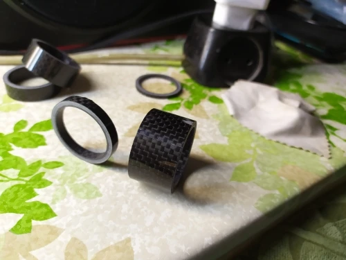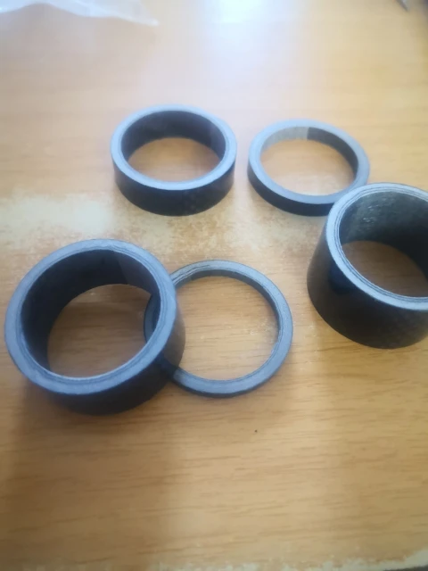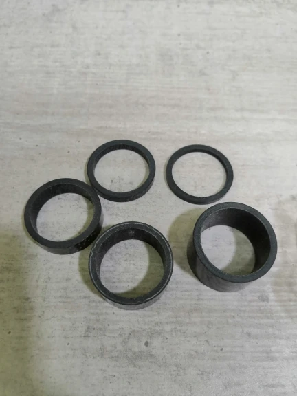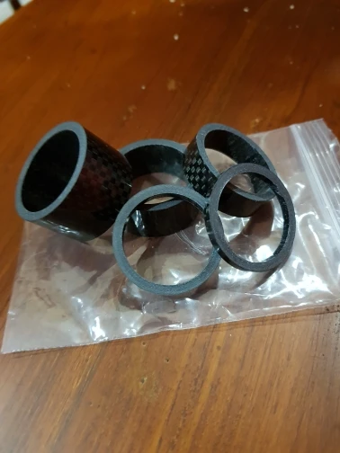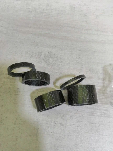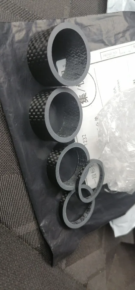 комплект колец с большим запасом по размеру. Брал на новую карбовилку, поставил все разом. получилось слишком высоко. Сами кольца аккуратные, гладкие, с виду карбоновые. Благодаря тому, что заказал сразу много товаров (вилка и всё к ней) али консолидировал посылку и ускорил отправку. Заказал 7.12, приехало 23.12