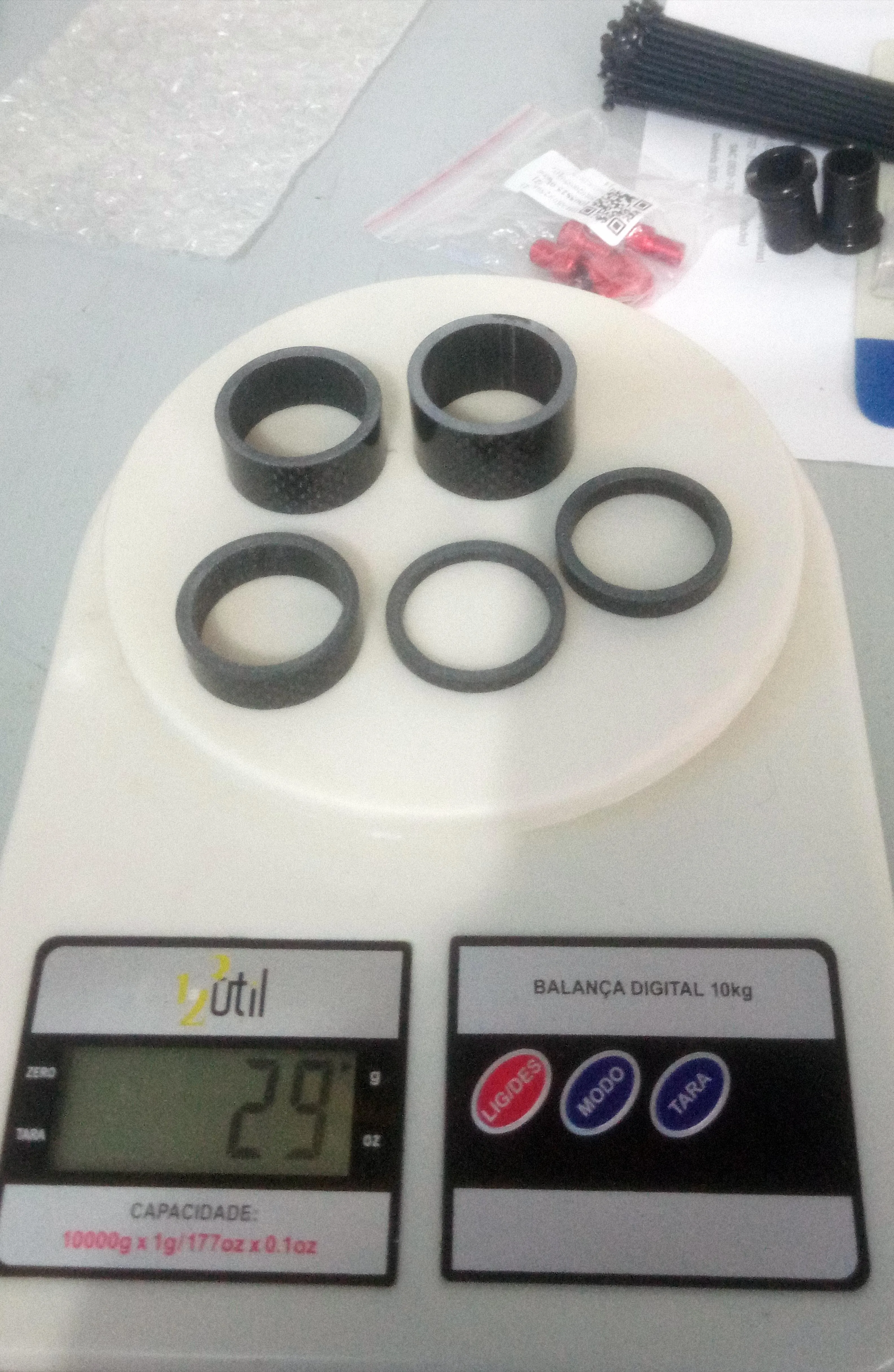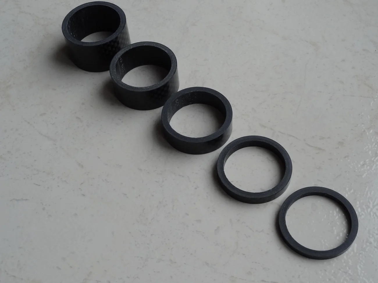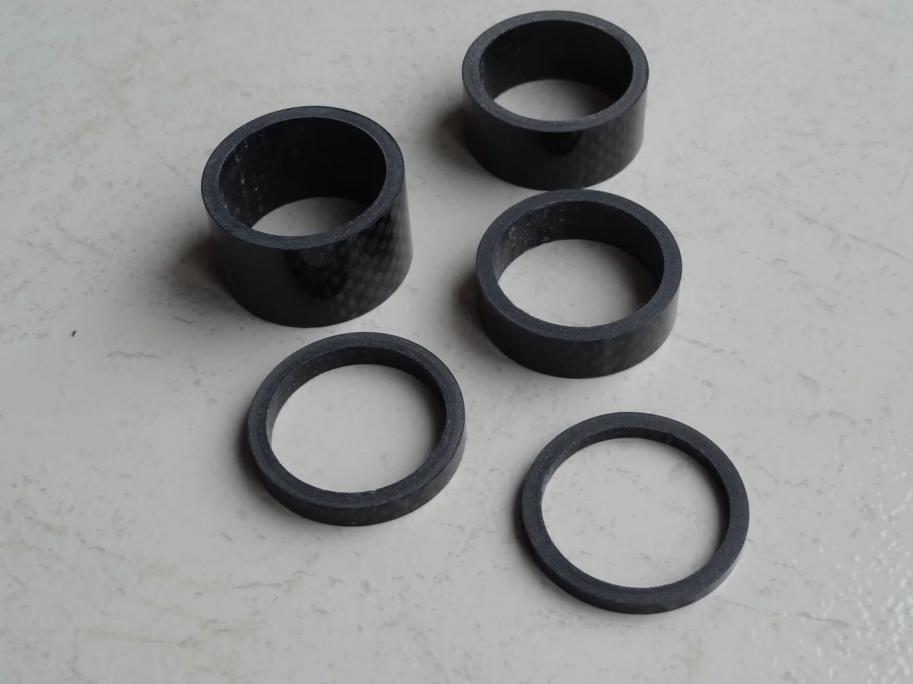 комплект колец с большим запасом по размеру. Брал на новую карбовилку, поставил все разом. получилось слишком высоко. Сами кольца аккуратные, гладкие, с виду карбоновые. Благодаря тому, что заказал сразу много товаров (вилка и всё к ней) али консолидировал посылку и ускорил отправку. Заказал 7.12, приехало 23.12