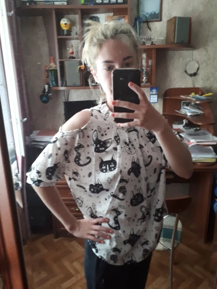 Блузка как на картинке. Я попросил M, и хотя на этикетке бумаги написано M, в которой она будет сшита блузкой, она ставит L... в любом случае она мне подходит (обычно я использую M или S). Качество оставляет желать лучшего, у него много свободных нитей в швах.