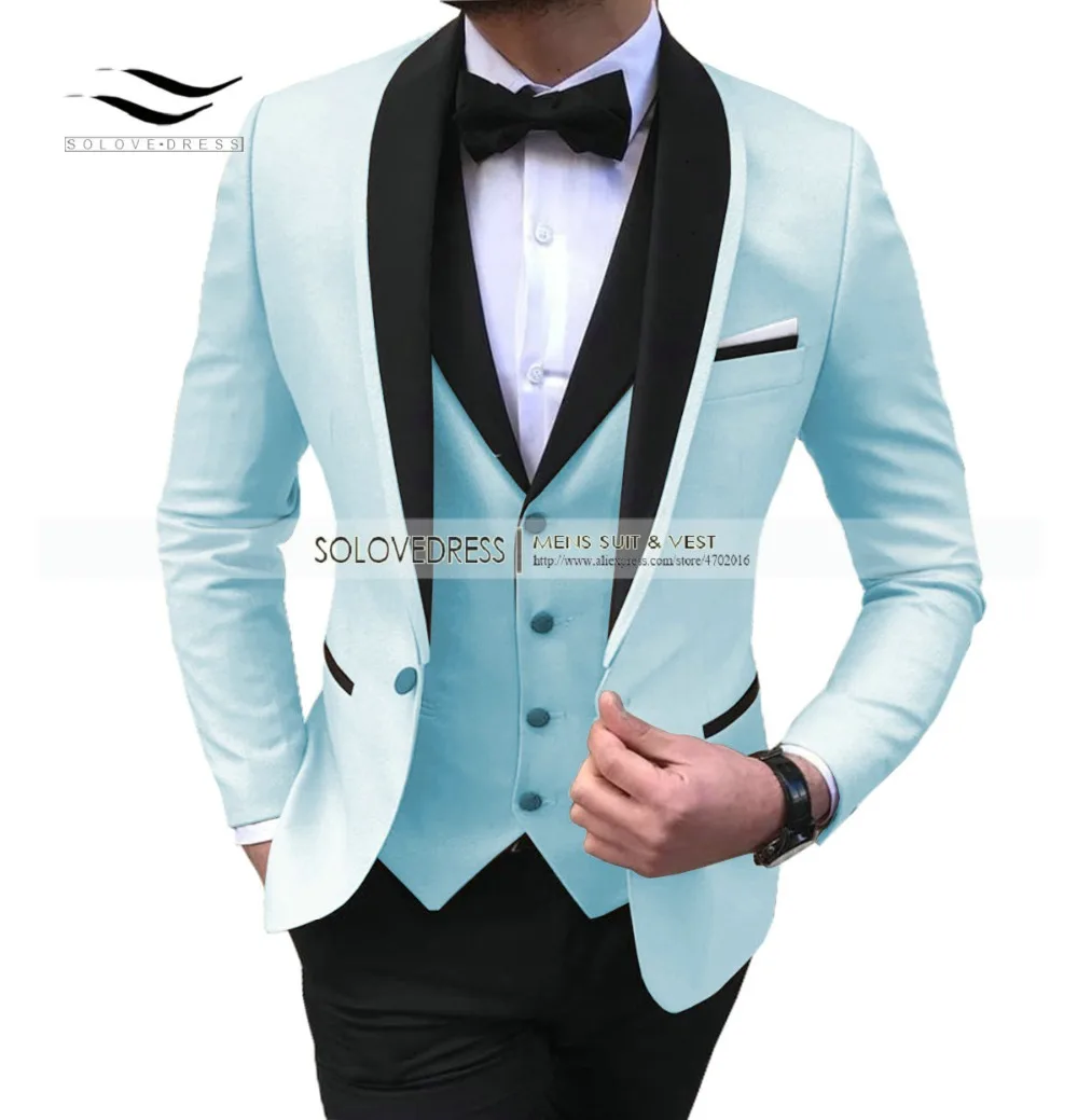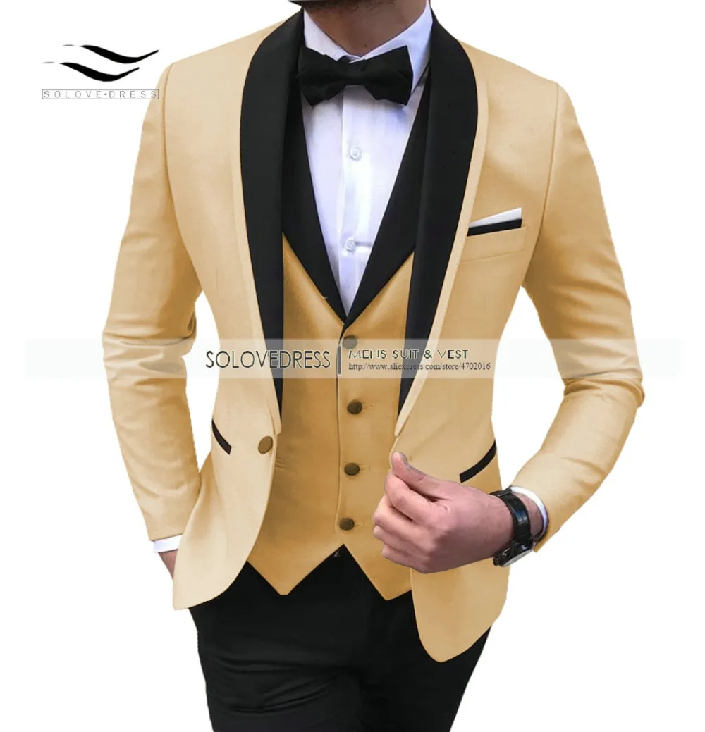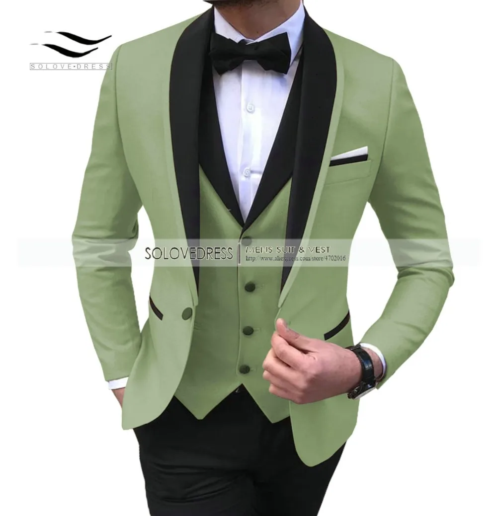 Мужские бежевые повседневные облегающие смокинги для выпускного вечера ярко-синие зеленые серые деловые белые костюмы с лацканами для выпускного вечера (Блейзер + брюки + жилет)